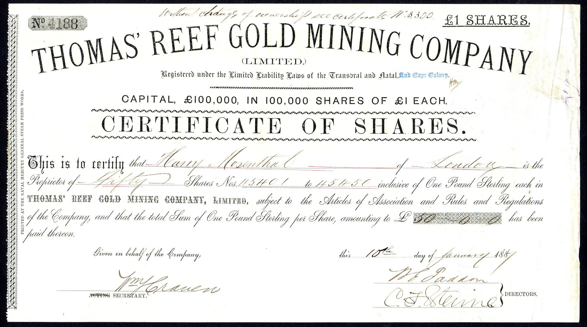 Registered in the Transvaal and Natal by 1887 and later in Cape Colony.
