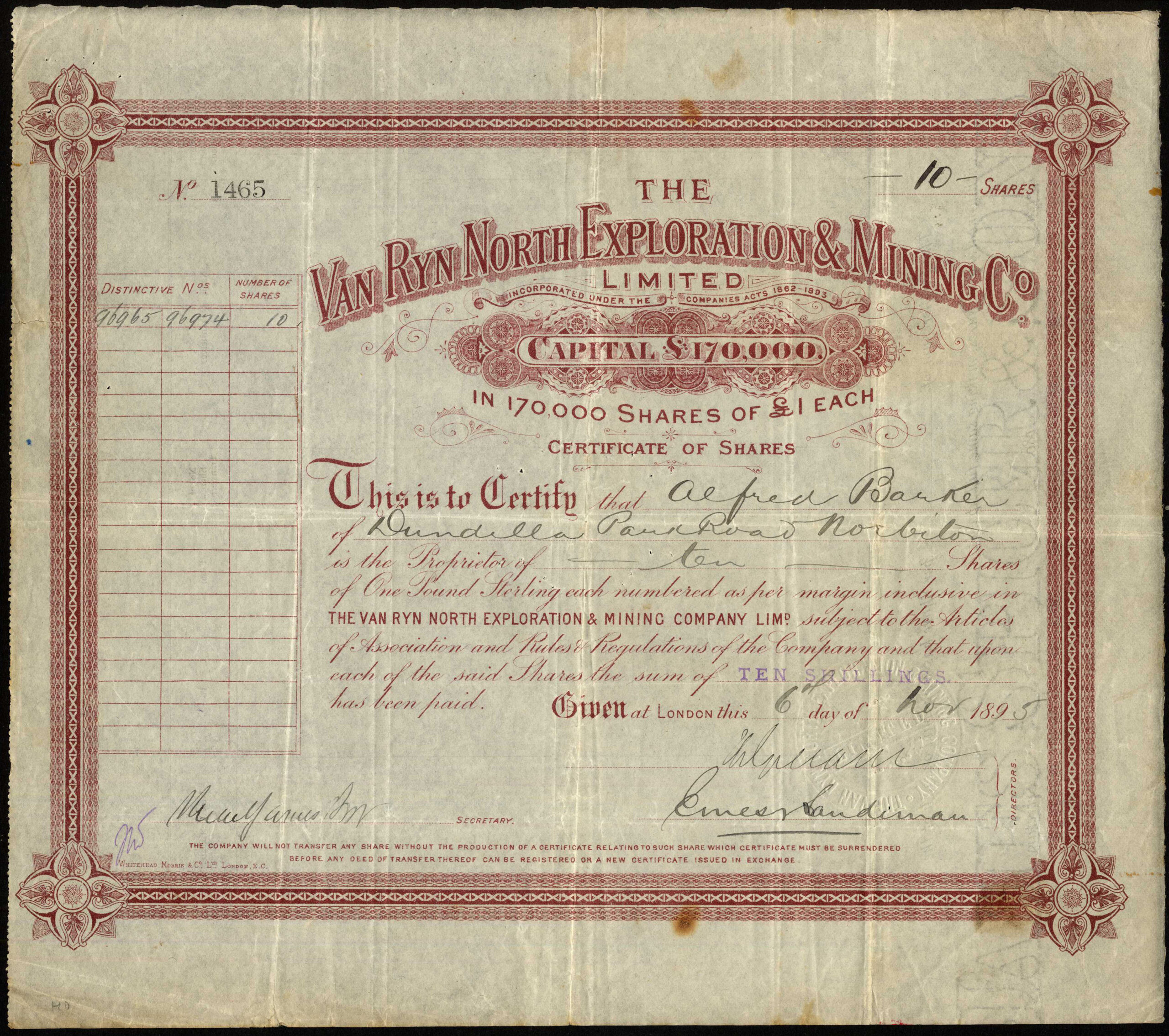 Registered 1895. Dissolved <1916. Company number 44224 Capital £170,000 in shares of £1.