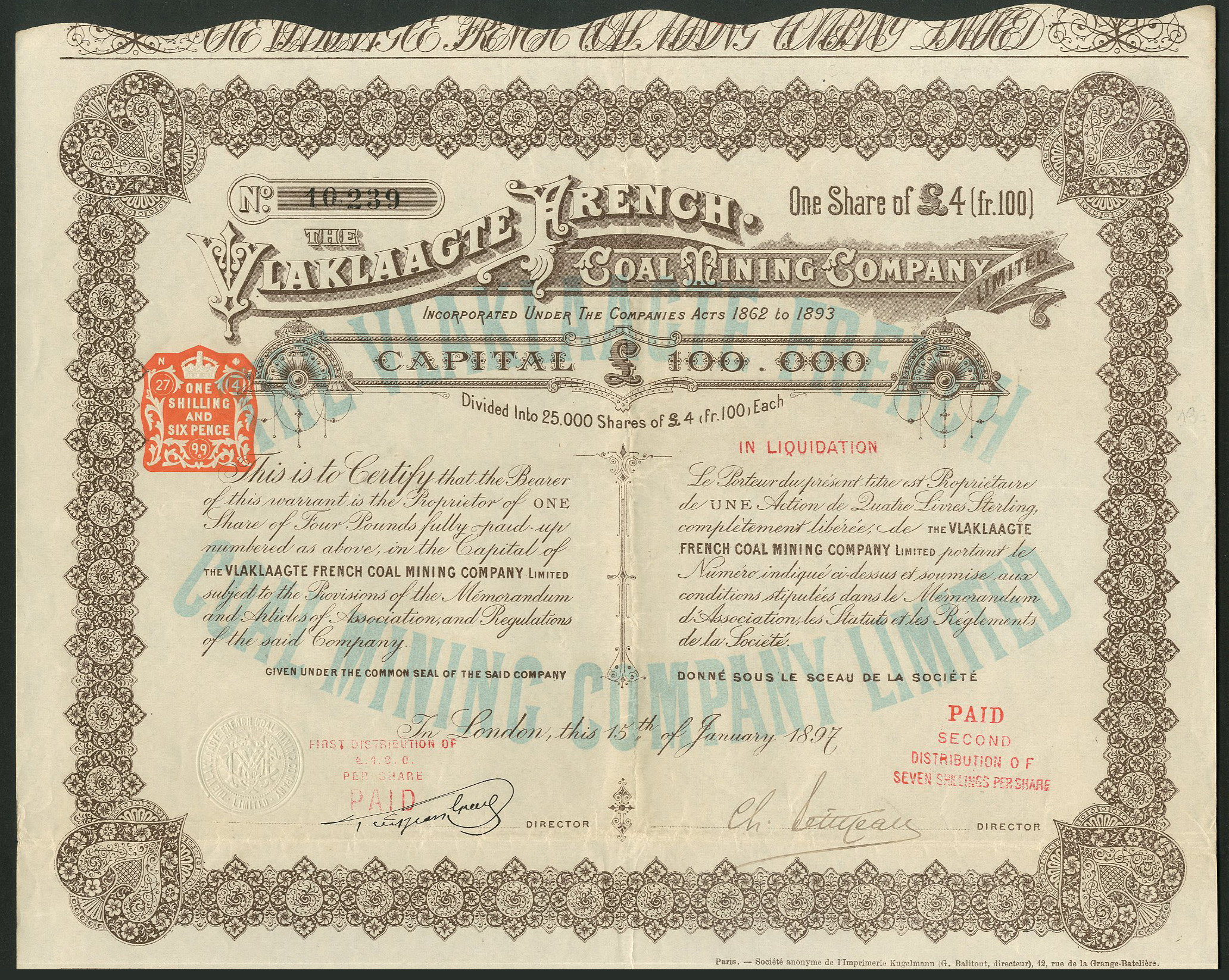 101 | 1 share | 1897, brown, with coupons | #10239 | VF | £35-40 |