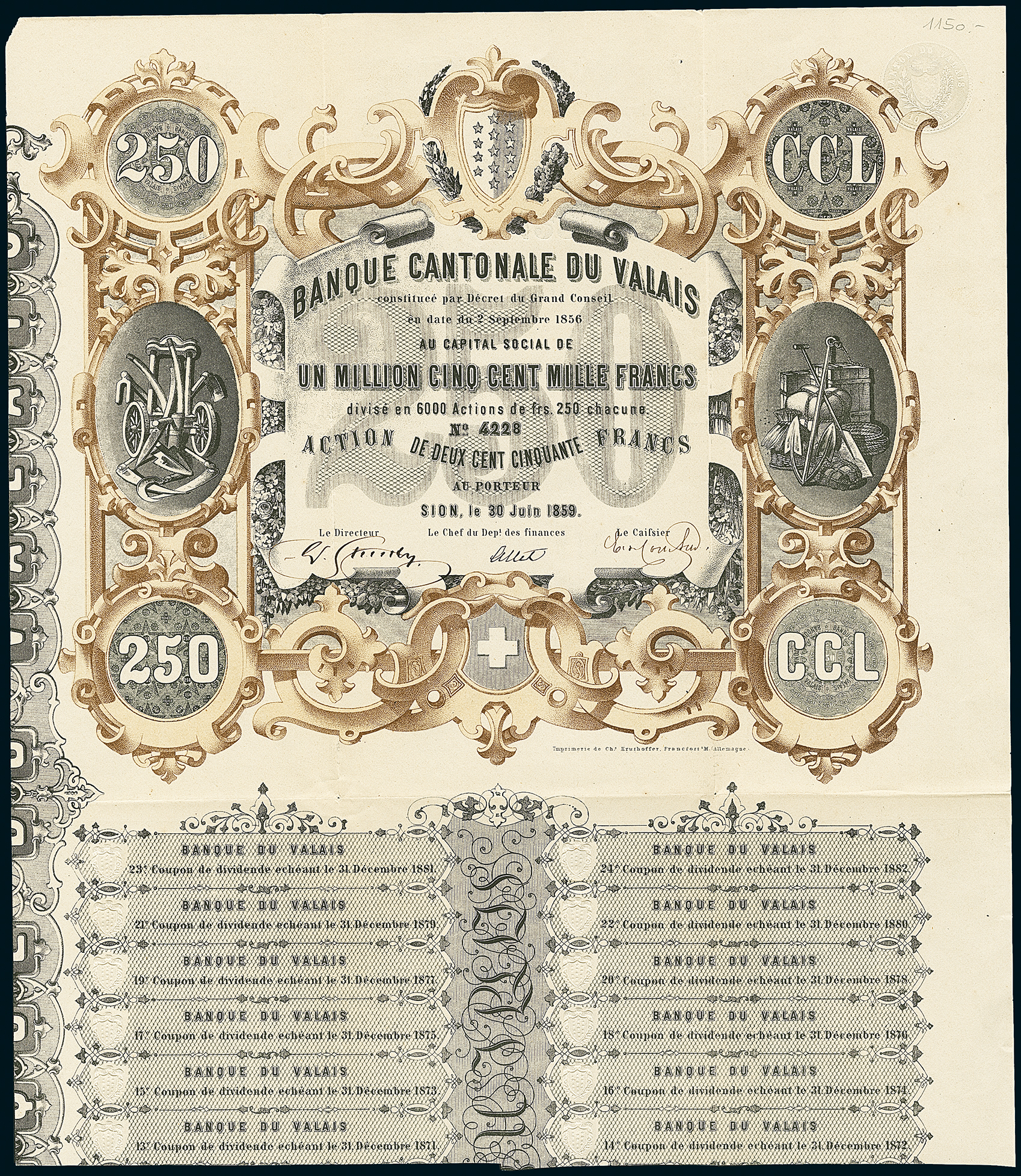 Capital 1,500,000 francs in shares of 250 francs.