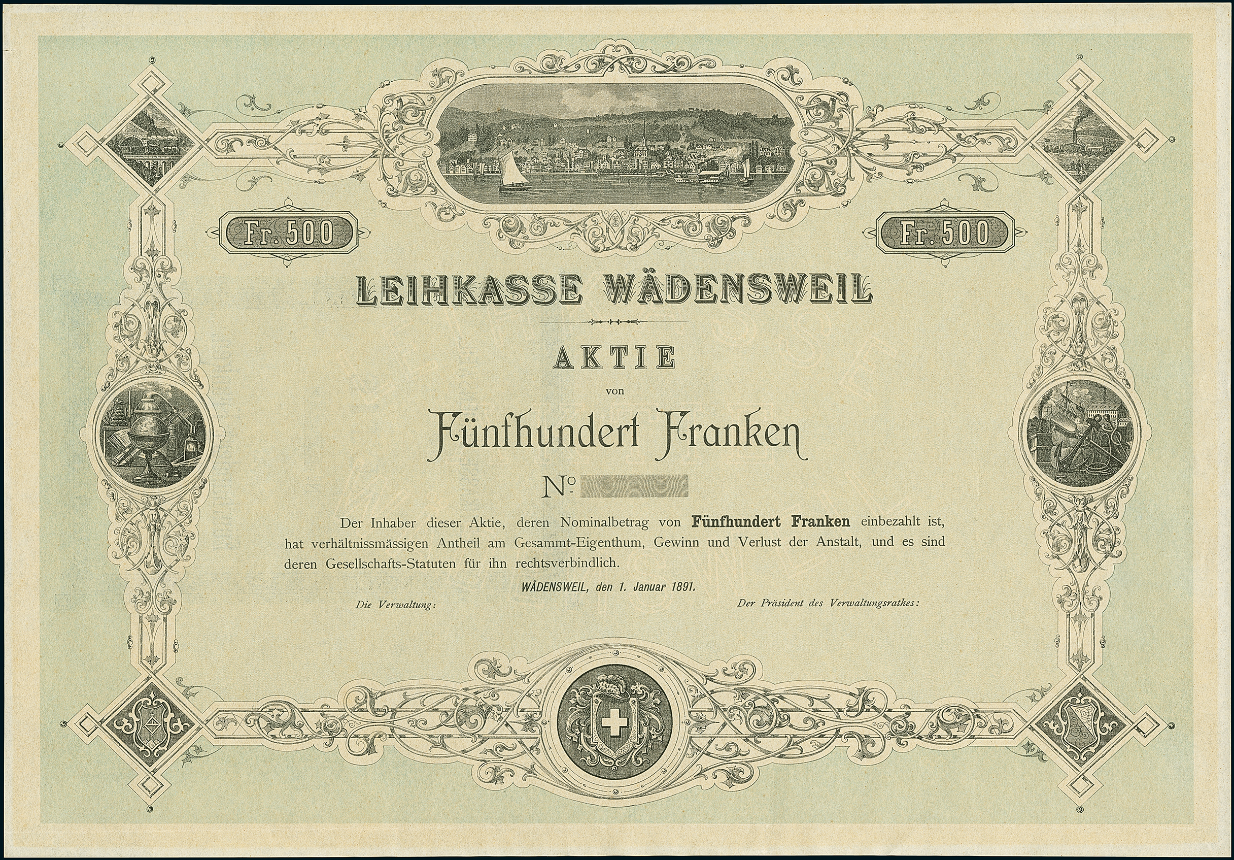 | 101 | Aktie | 1891, unissued, black, green underprint | ? | Sfr.? |