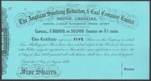 101 | 5 shares | 1858, black on blue paper | ? | VF | £5-10 |