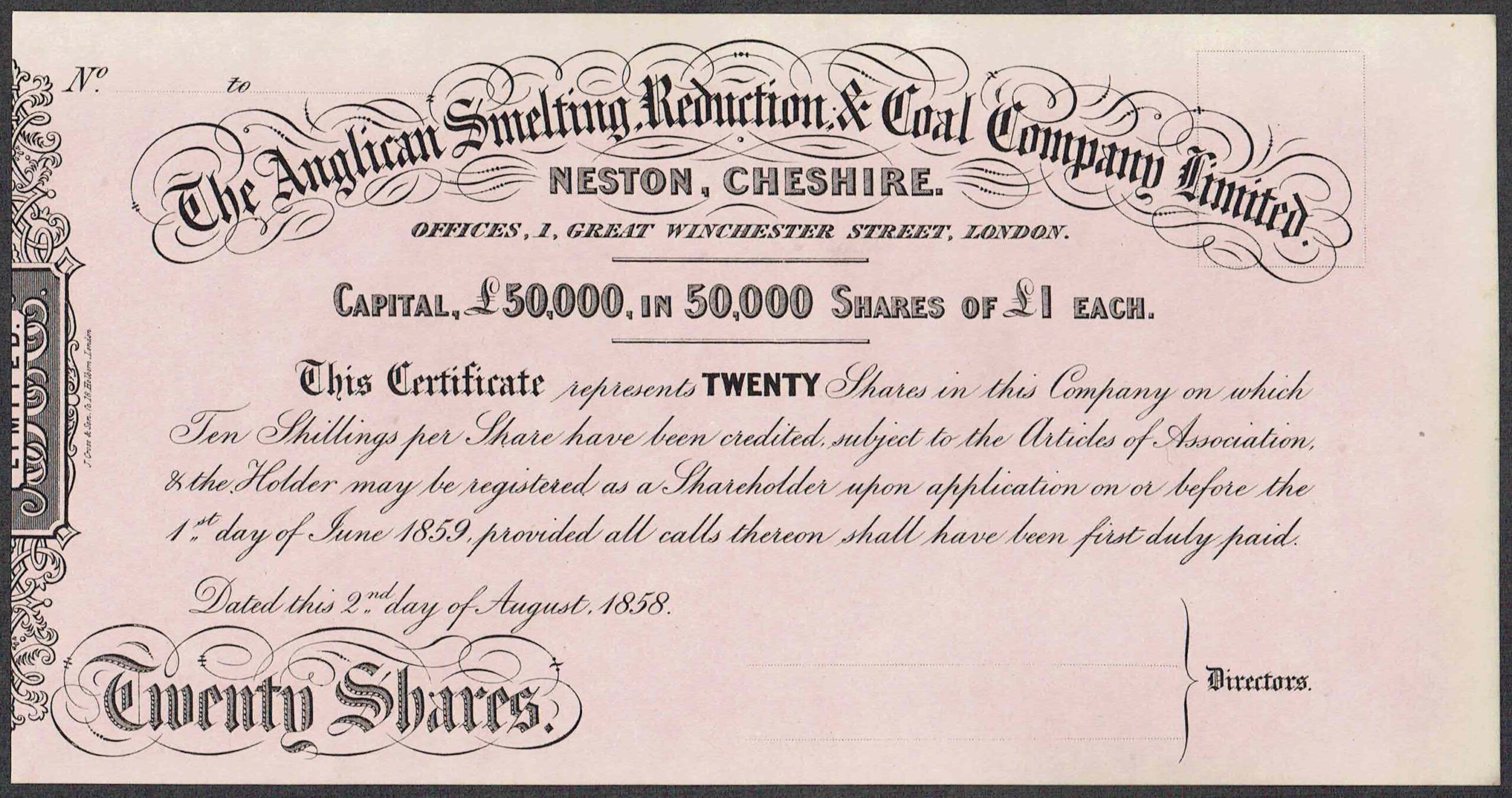 103 | 20 shares | 1858, black on pink paper | ? | VF | £5-10 |