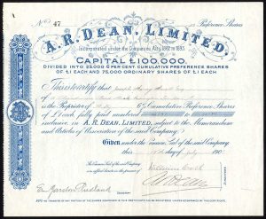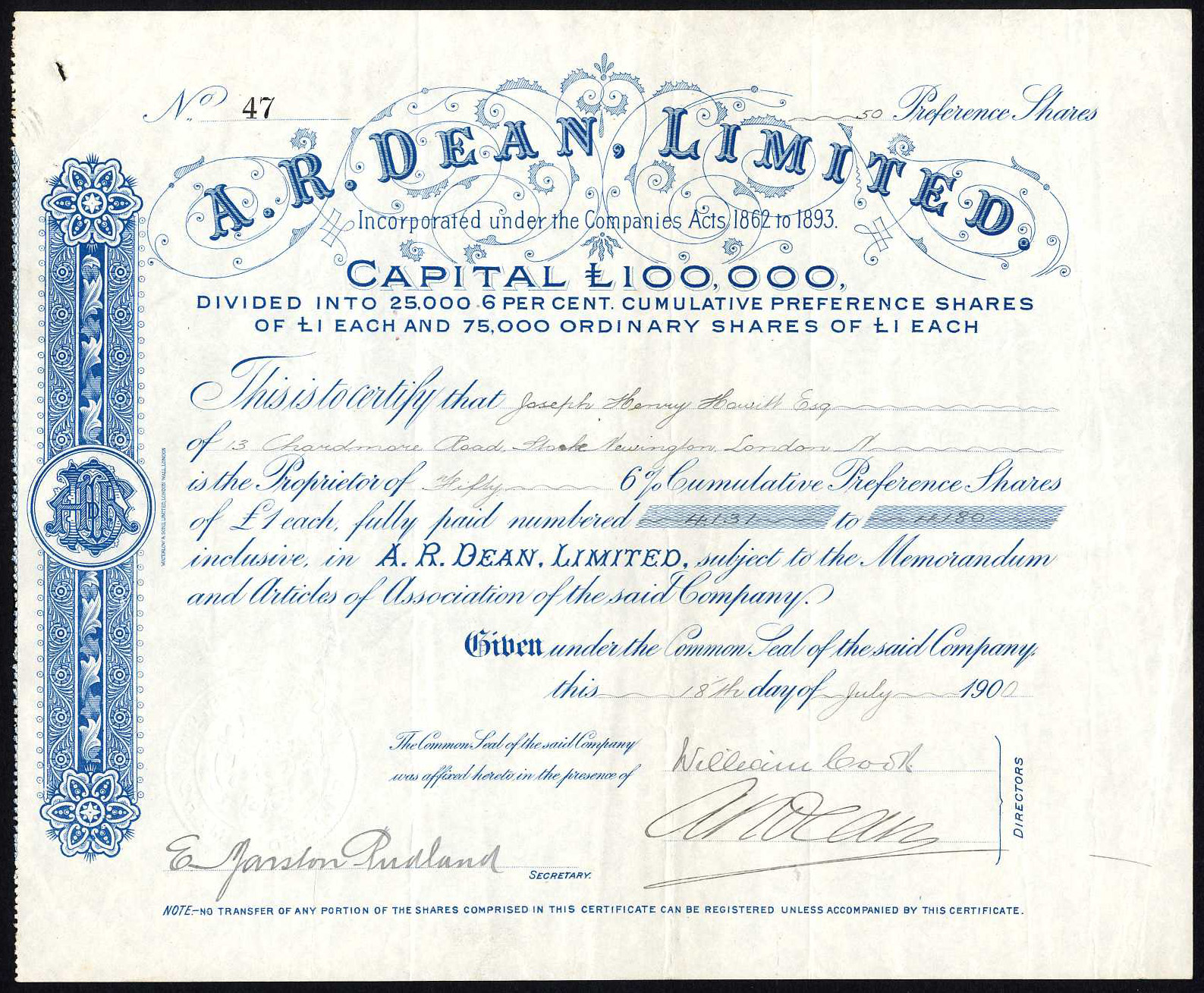 | 101 | preference shares | 190[0], blue, Waterlow & Sons | >47 | VF | £15-20 |
