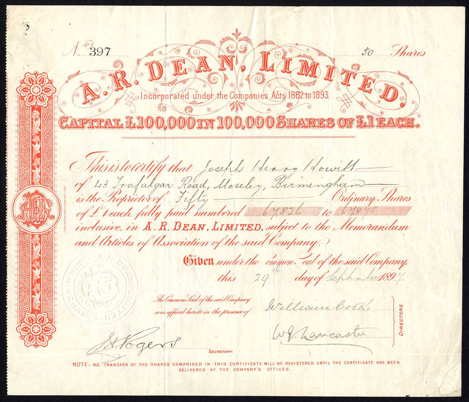 | 102 | ordinary shares | 189[7], red, Waterlow & Sons | >397 | VF | £15-20 |