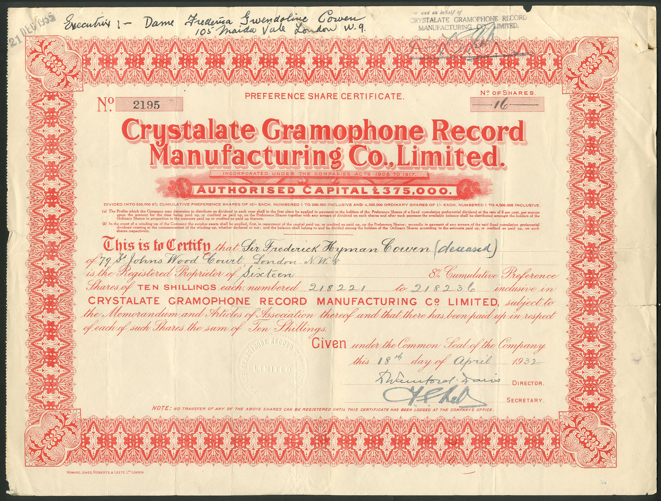 | 101 | Preference shares | 19[32], red | #2195 | £35 |