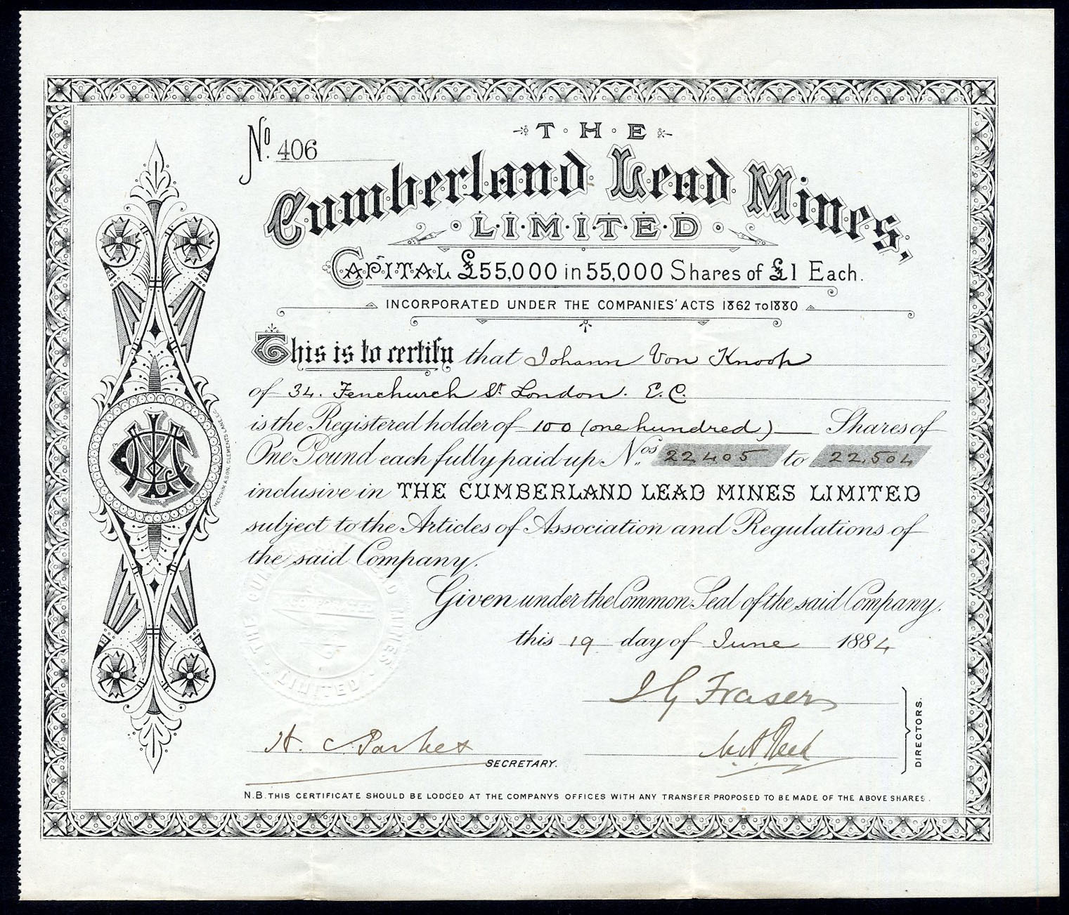 Formed to acquire mines at Thornthwaite, Cumbria.