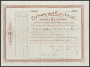 The Daily Mail Trust Limited was an investment company established in 1922 to consolidate the newspaper interests of Harold Harmsworth (1st Viscount Rothermere) following the death of his brother, Alfred. It was used to finance acquisitions, such as Hulton newspapers in 1923, and held shares in various publishing entities like Associated Newspapers, Limited.