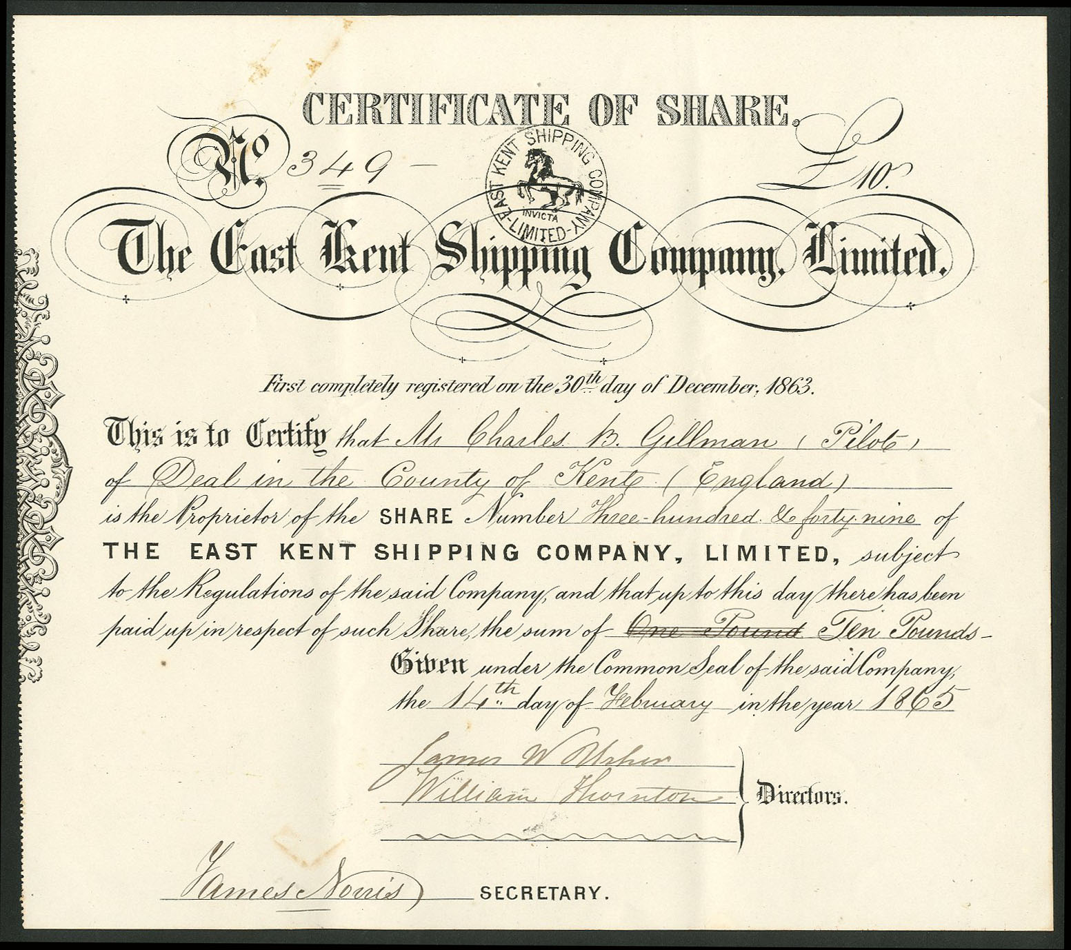 Registered 30th December 1863. Dissolved <1916. Company number 869C Capital in shares of £10.