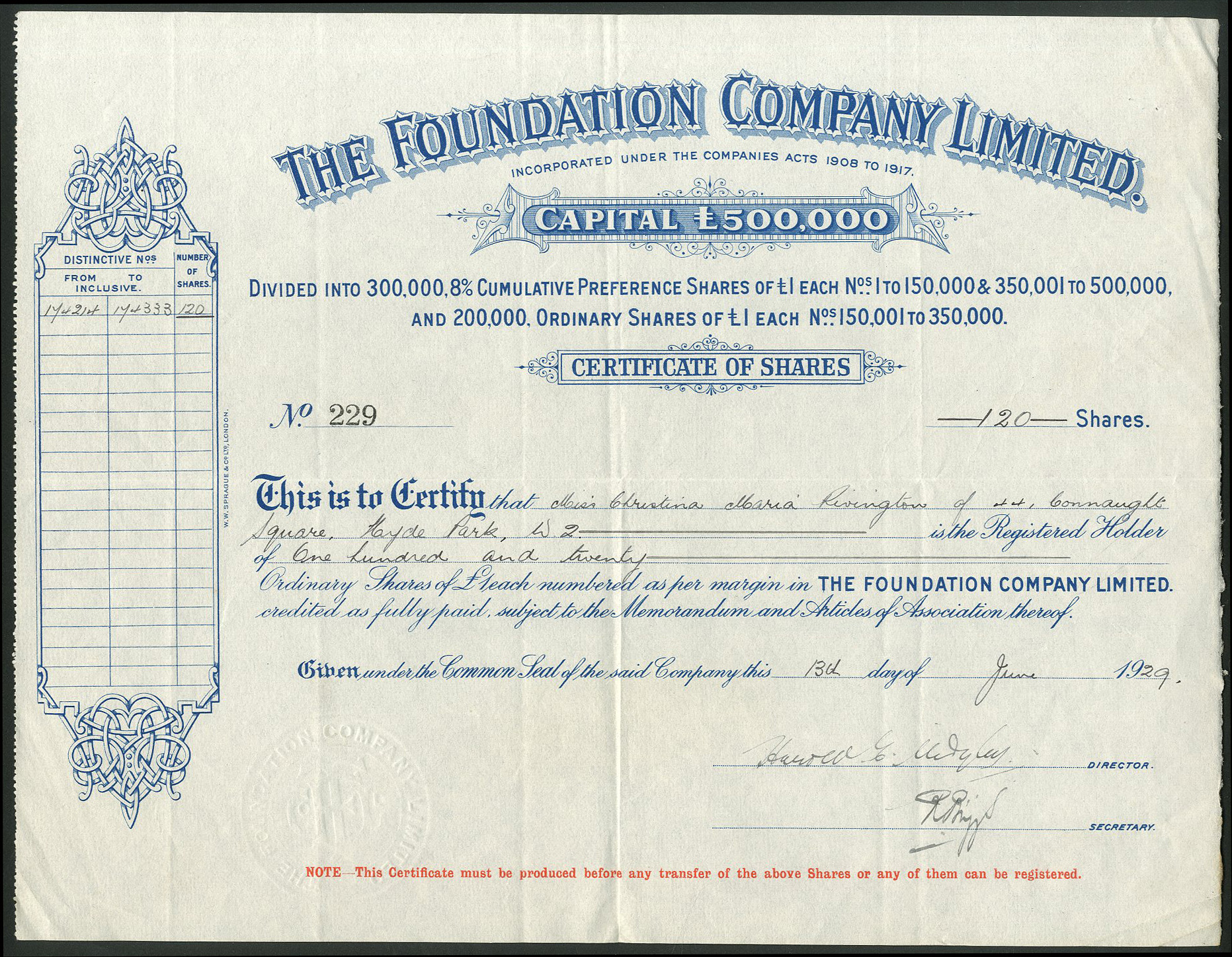 Registered 22nd February 1922 and converted to a public company in December 1923. General contractors and house builders. Company number 179870
