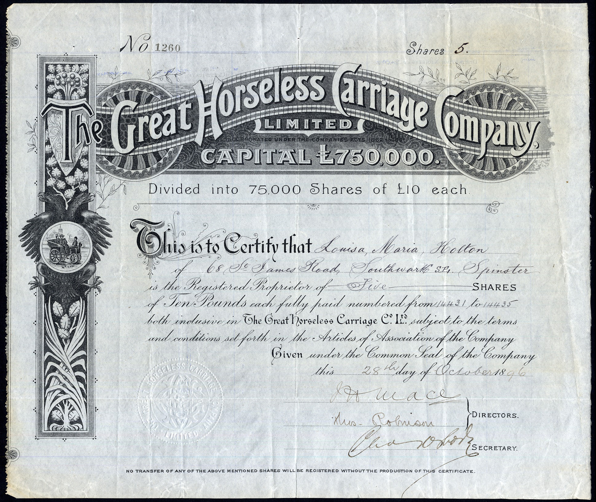 101 | £10 shares | 18[96], fully paid, black | #1260,#2273,#3189 | £250-300 |