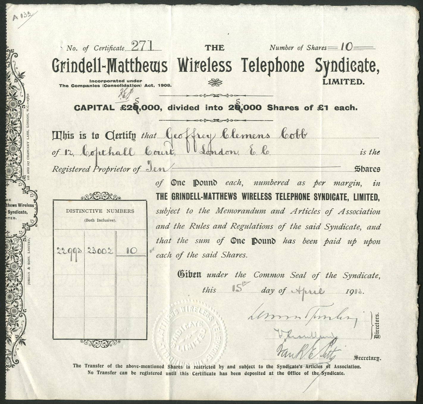 Grindell-Matthews Wireless Telephone Syndicate Ltd