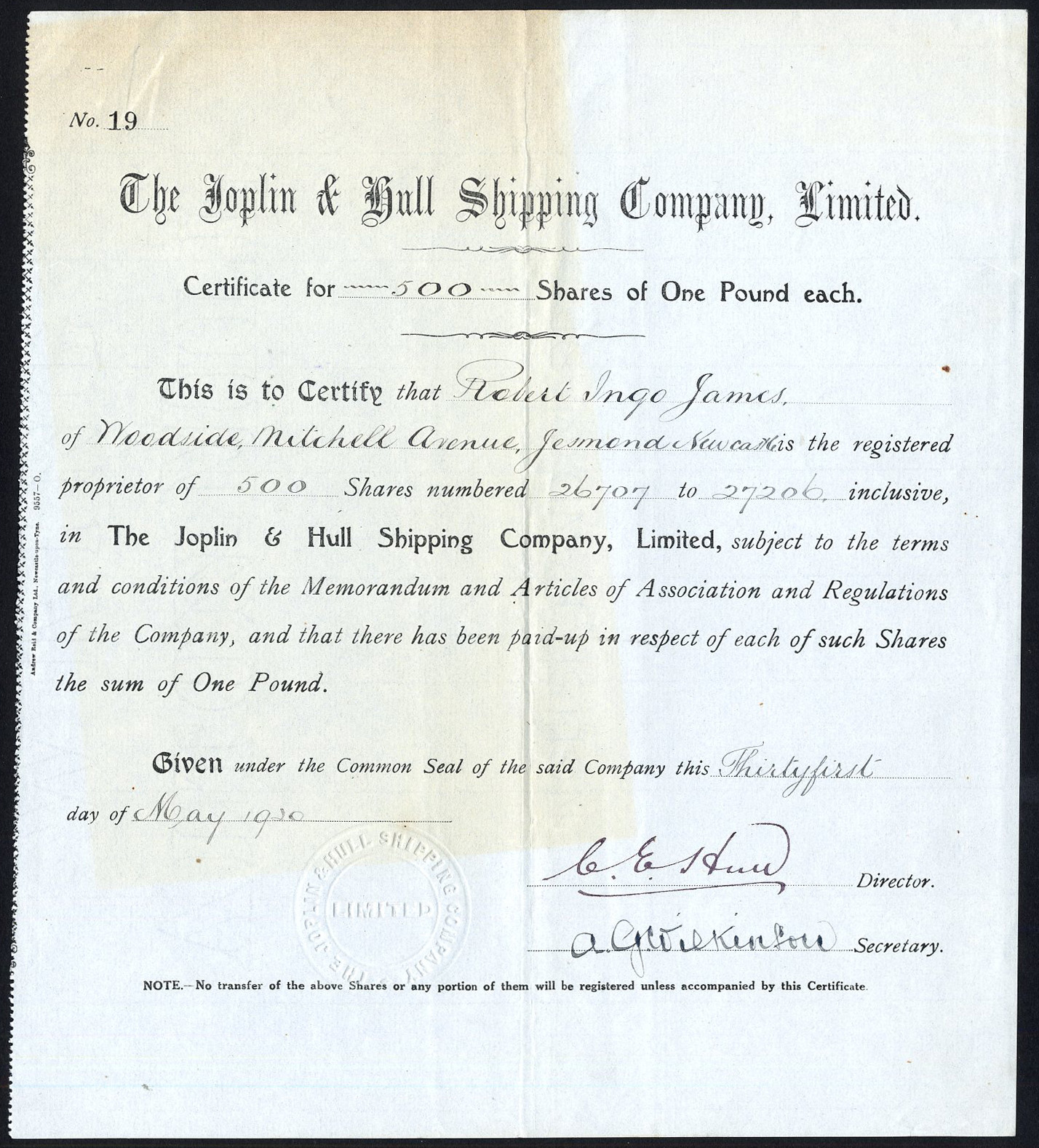 Registered 1920. Dissolved <1932. Company number 165551 Capital in shares of £1.