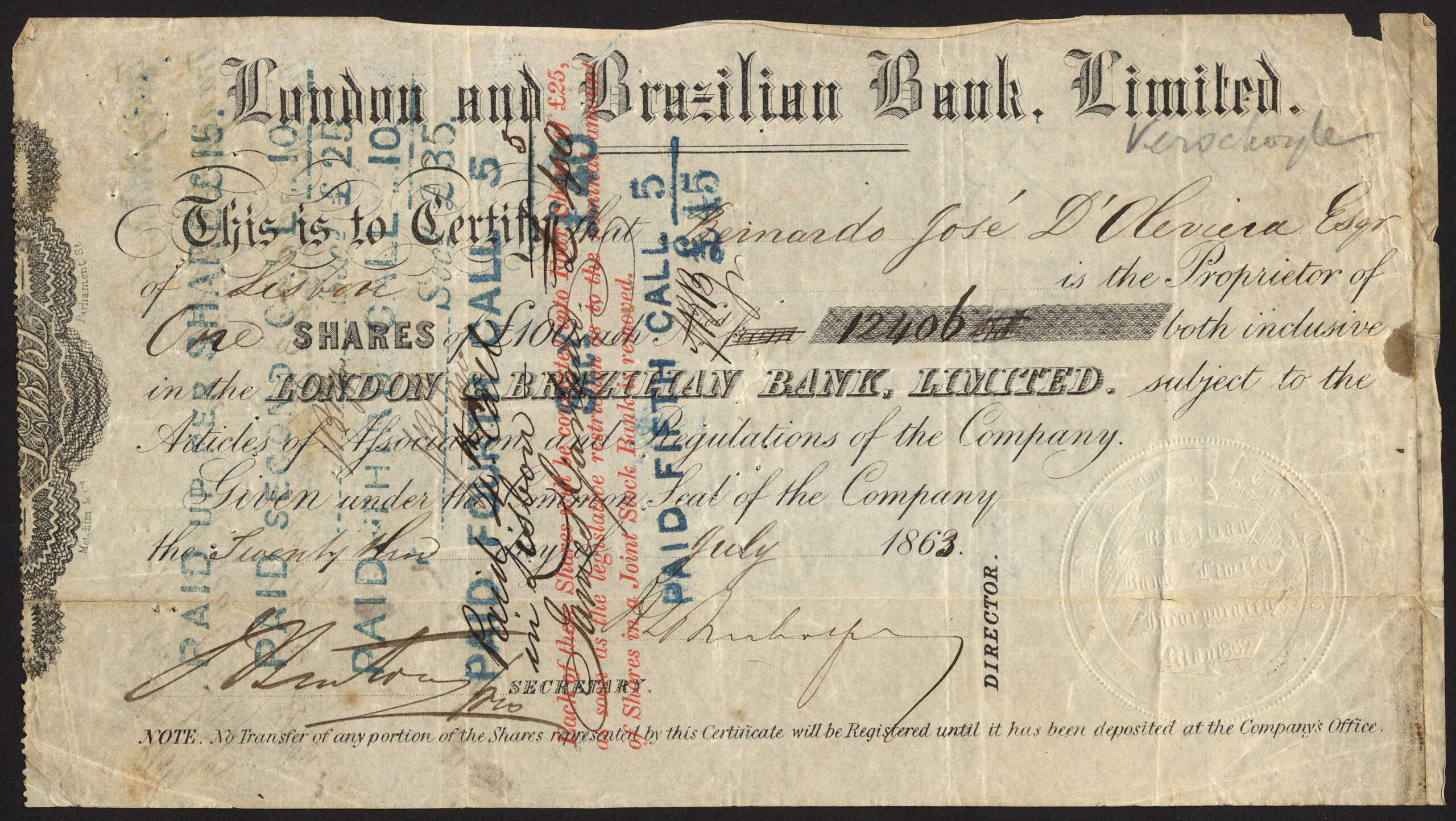 Registered 1862. Dissolved <1916. Company number 2691 Capital in shares of £100.