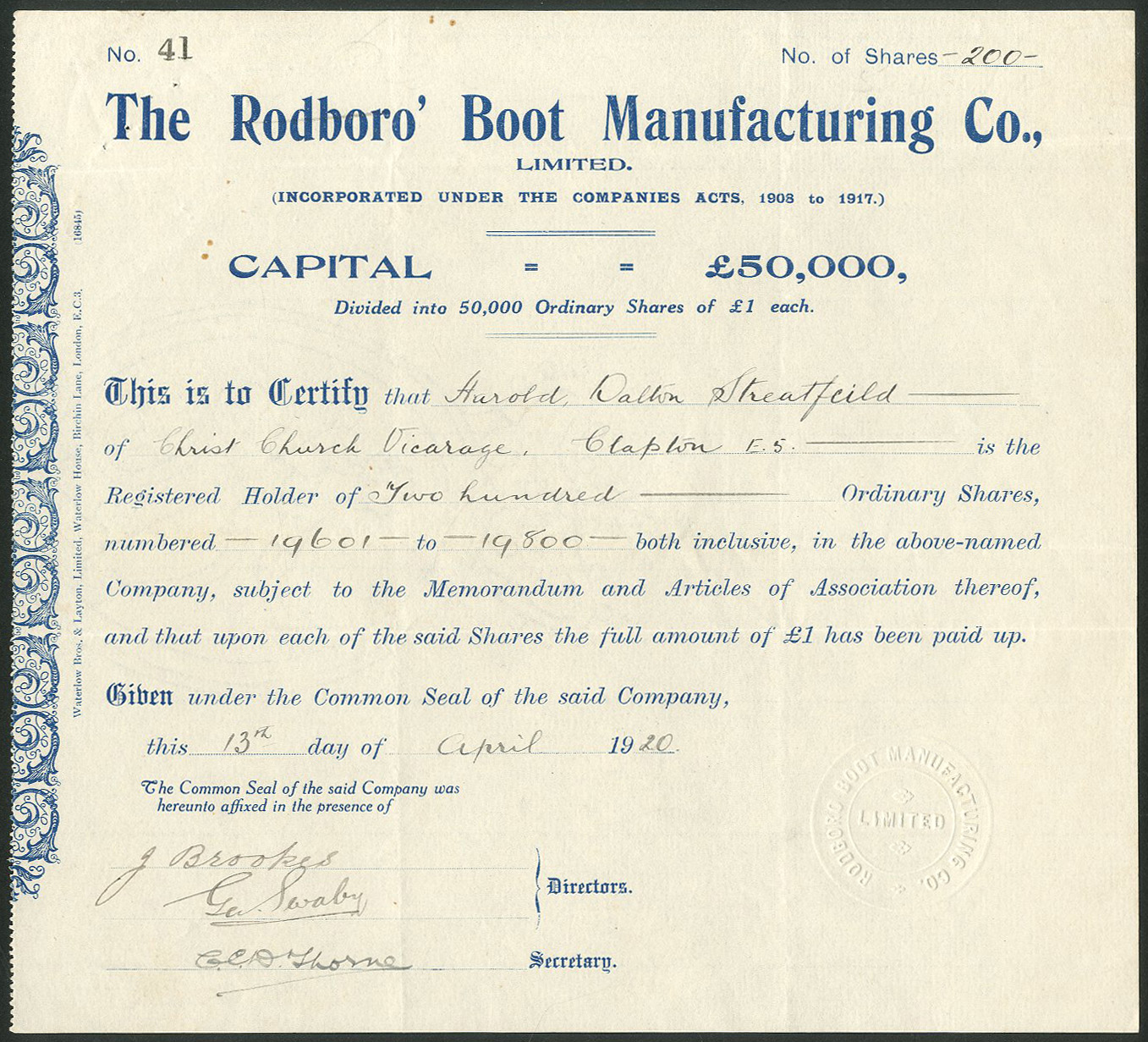 101 | Shares | 19[20], blue, Waterlow & Sons | #41 | £20 |