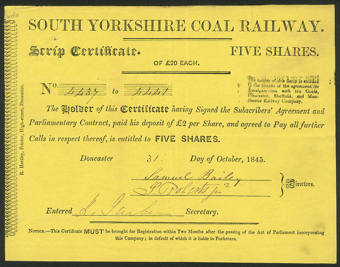 Registered in 1845 under the 1844 Companies Act. Capital in shares of £20.