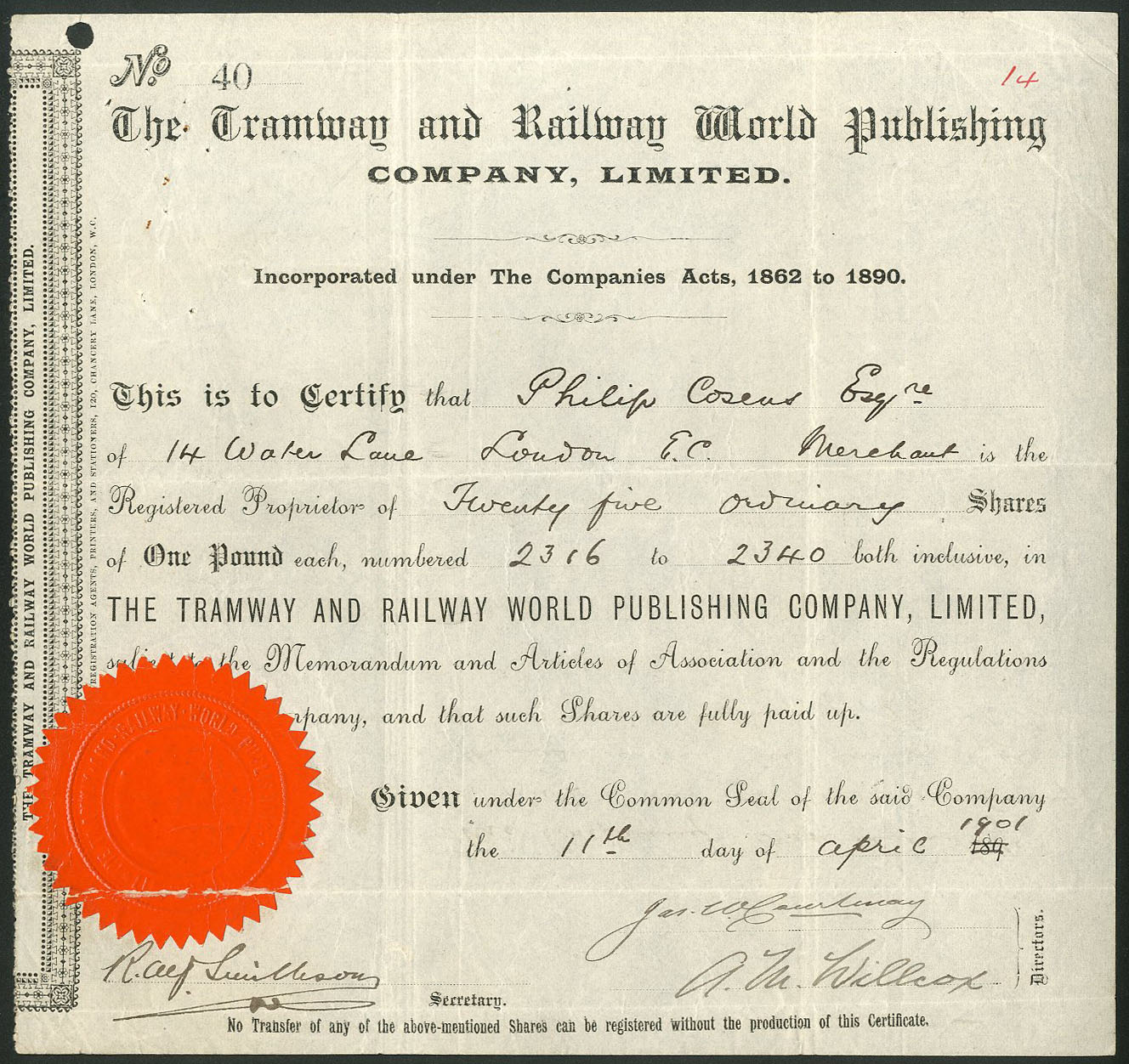 Registered 1892. Specialist newspaper statrted in 1892. Name changed to Transport World in 1942. Dissolved <1916. Company number 35628