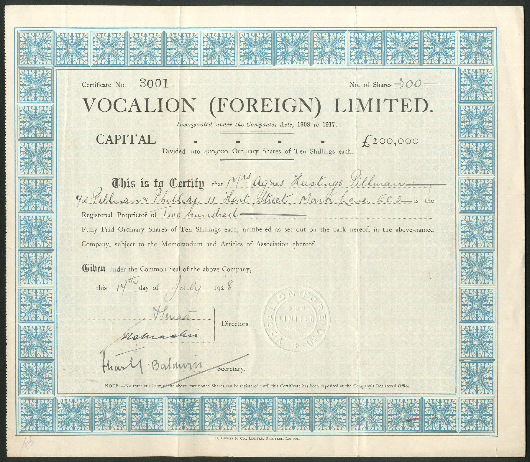 Registered 1928. Dissolved <1948. Company number 228975