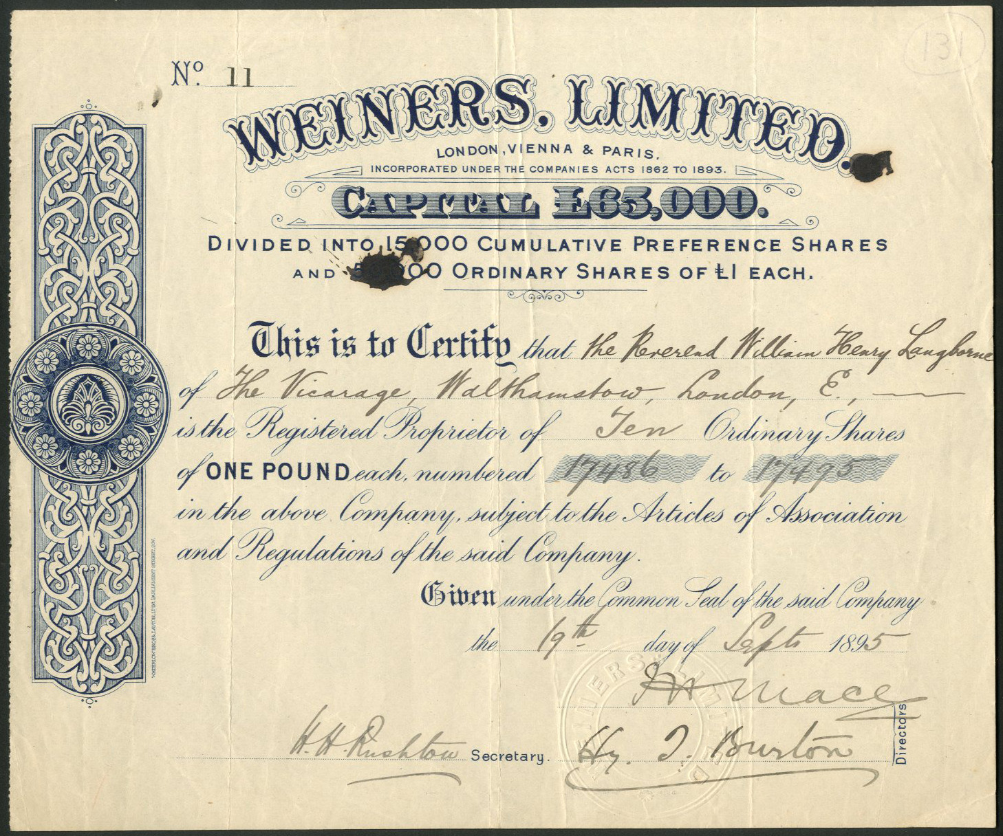 Formed in 1895 to acquire the business of J. Weiner Limited, art printers and lithographers with branches in Acton, London, Vienna and Paris. The Vienna branch had the sole concession for advertising in the city and suburbs. Dissolved <1916. Company number 44862