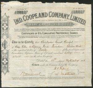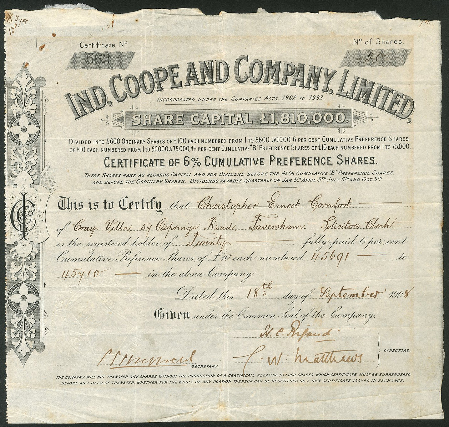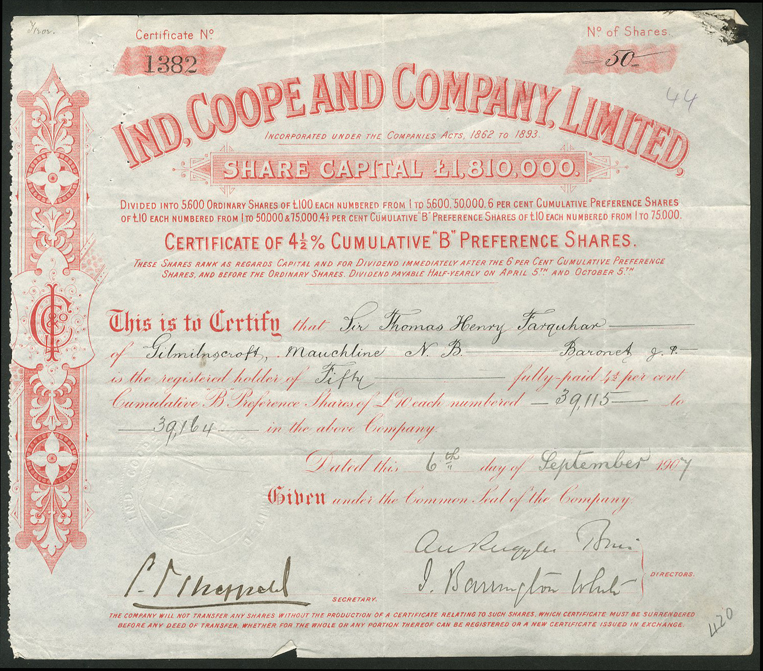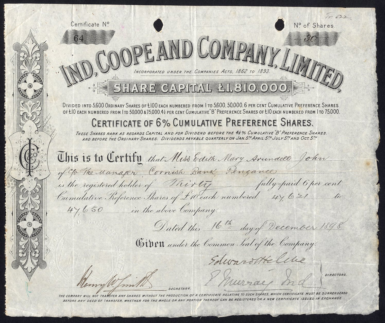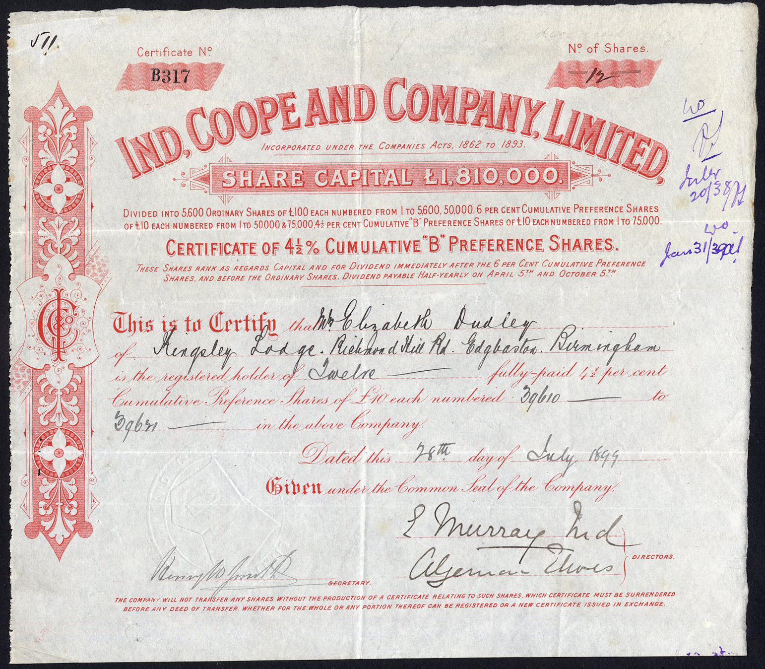 Capital £1,810,000 in 5600 Ordinary shares of £100, 50,000 6% Cumulative Preference shares and 75,000 4½% Cumulative ‘B’ Preference shares, of £10.