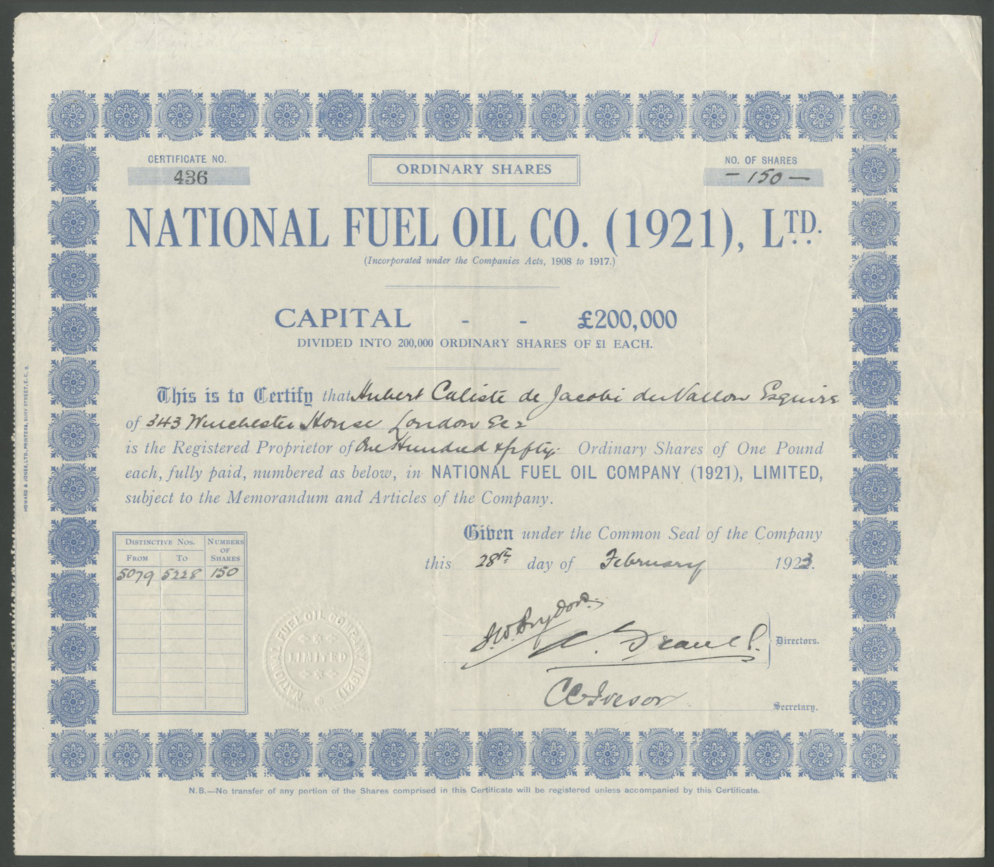 Registered 15th August 1921 as a reconstruction of National Fuel Oil Co. Ltd., importers and distributors of petroleum. Dissolved <1932. Company number 176288