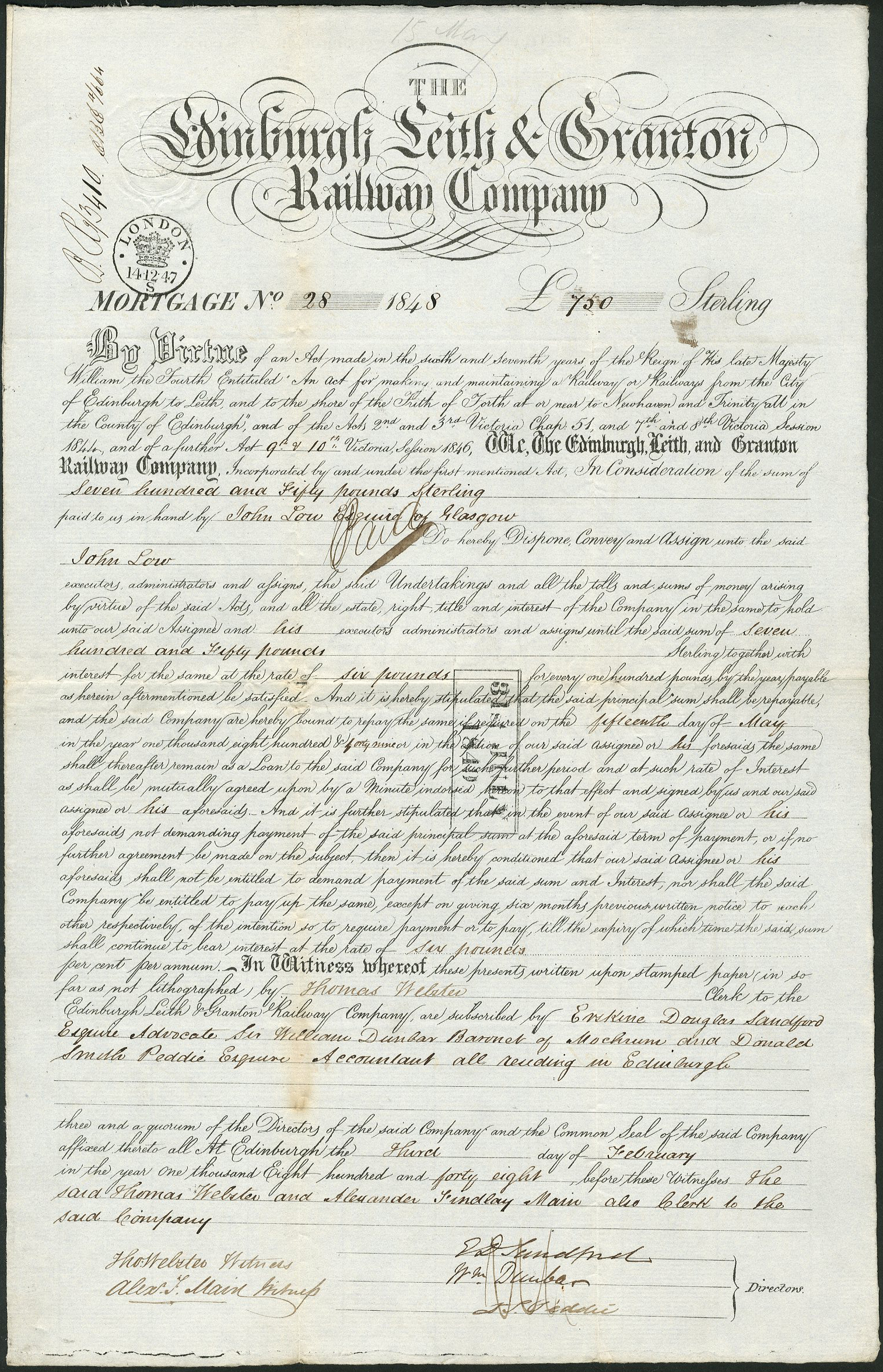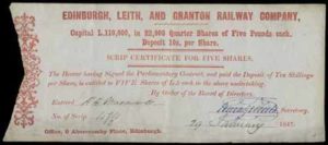 Originally named the Edinburgh, Leith and Newhaven Railway (1836). Only part of the intended line was opened, with the Leith section being abandoned due to engineering difficulties. This section was revivied when the extension to Granton was authorised. The line was taken over by the Edinburgh and Northern Railway in 1847.