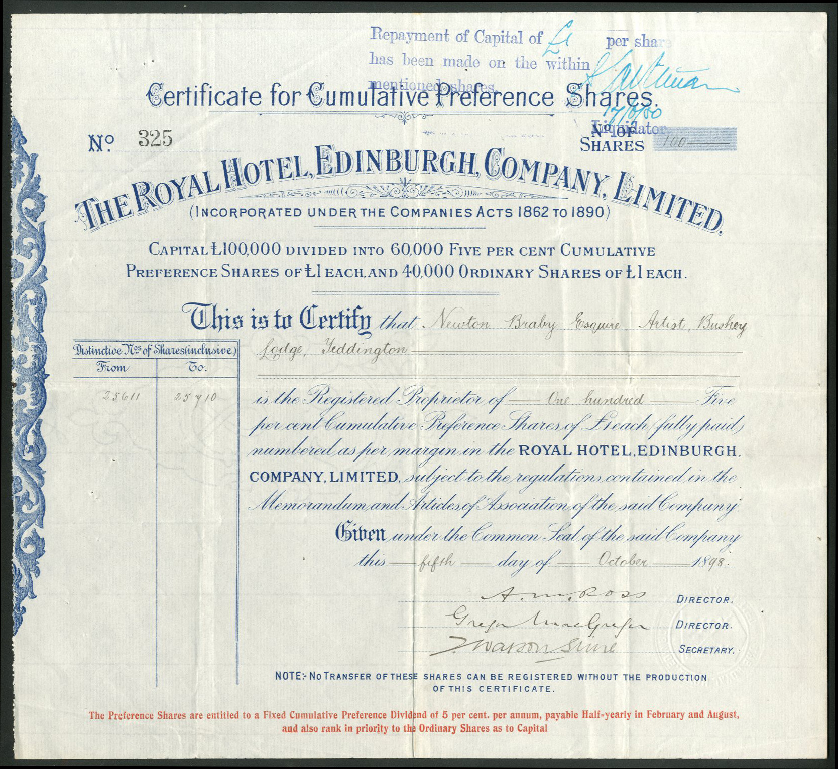 101 | Preference shares | 18[98], blue | #325 | £30 |
