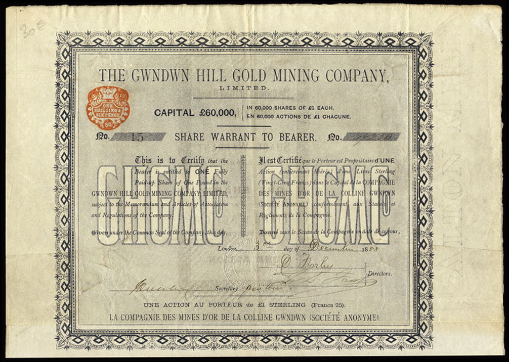 101 | one share | 18[88], blue and black, with coupons | >382 | VF | £60-80 |
