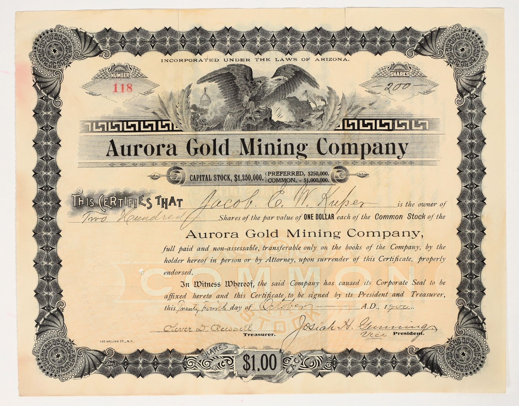 | 102 | Common Shares | 1[900], black, yellow underprint | #118 | $100 |