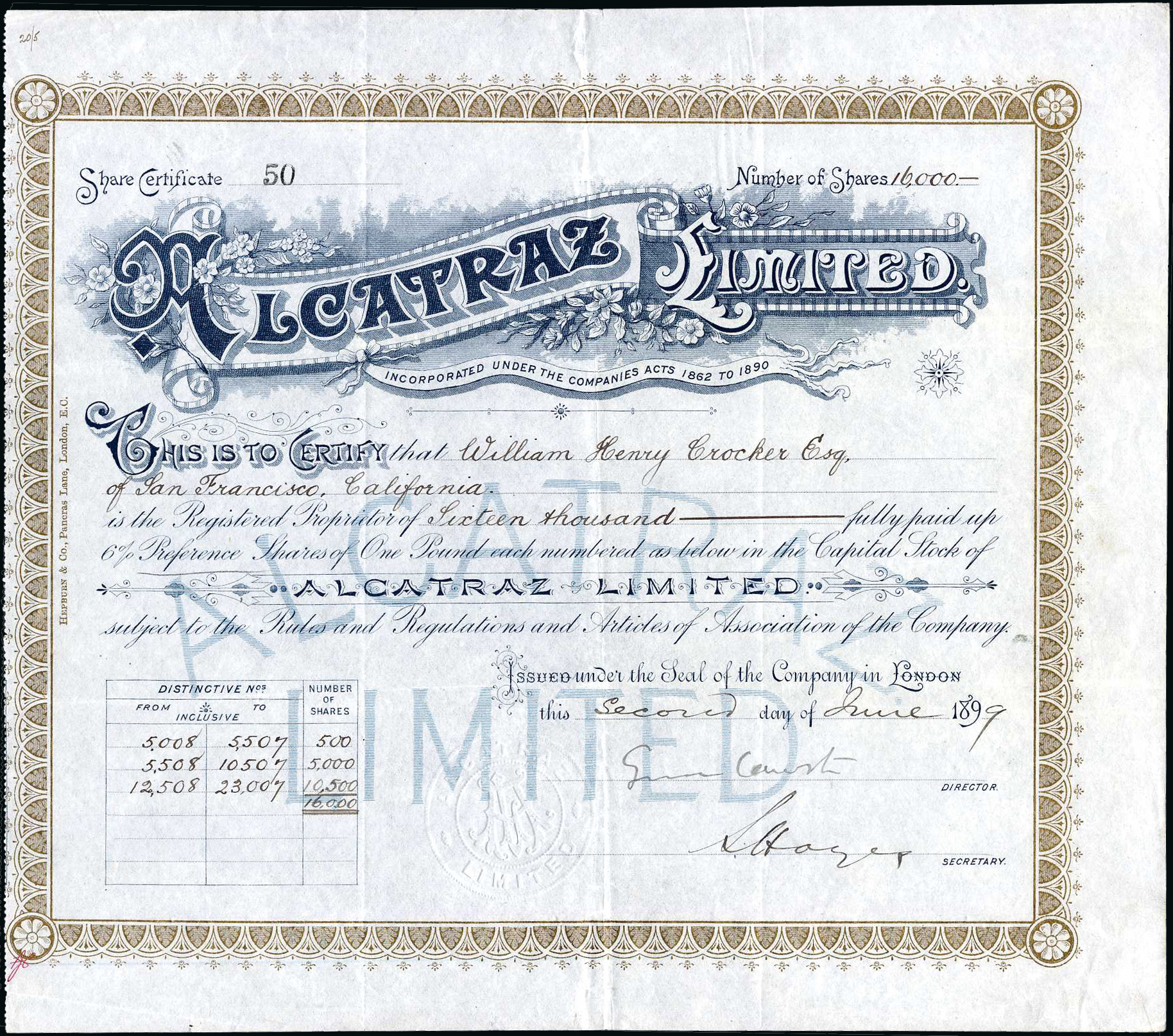 | 101 | Preference shares | 189[9], blue and gold Issued to William H. Crocker |