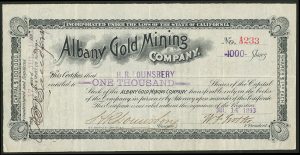 Incorporated in California by 1893. Owned the Elephantine gold mine in the Jackson Mining District, Amador County, California. Sold by Sherrifs sale in 1900 in settlement of claims.