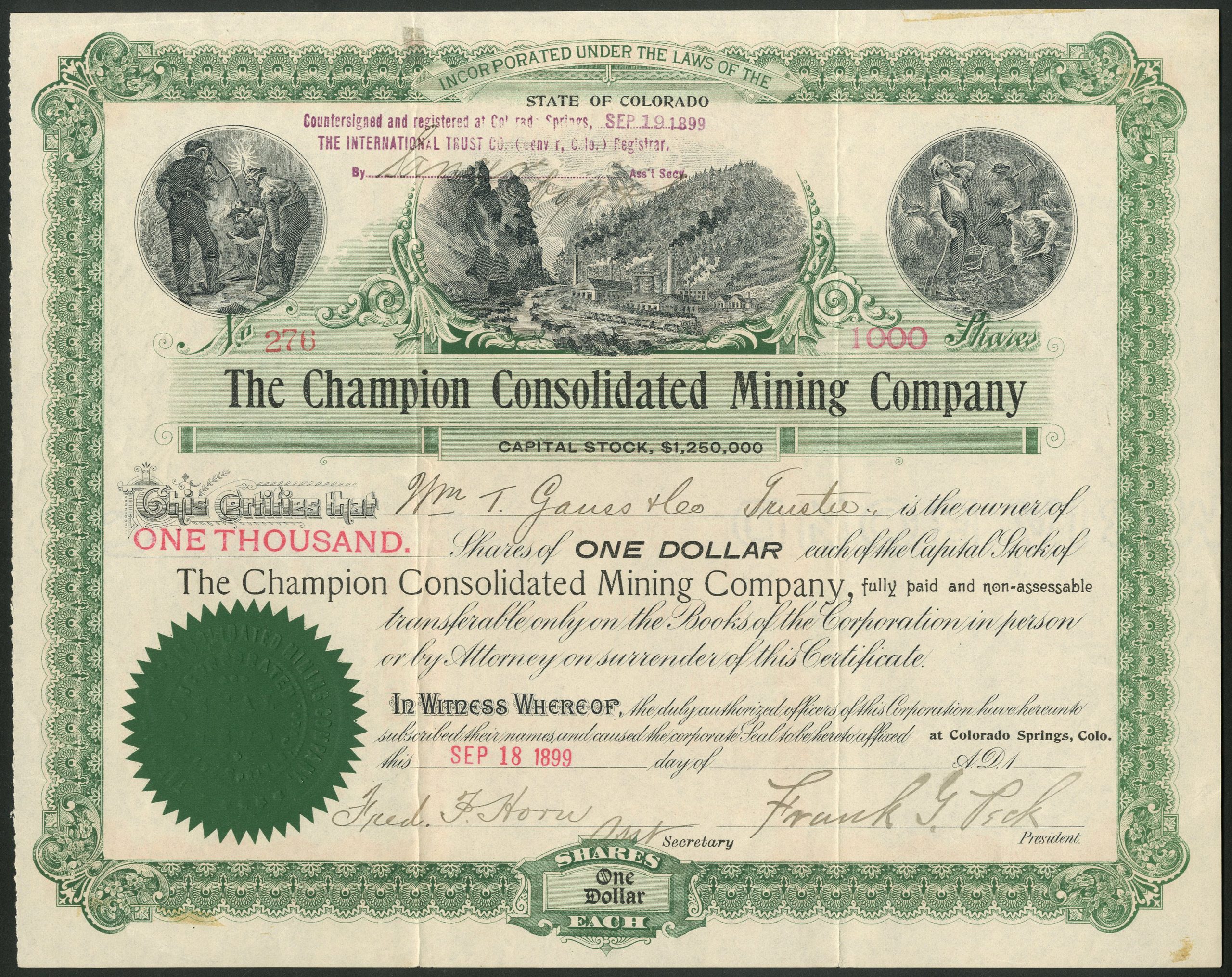 Incorporated by 1899 in Colorado. Owned the Champion, Golconda and Iron Duke on Raven Hill, Cripple Creek.