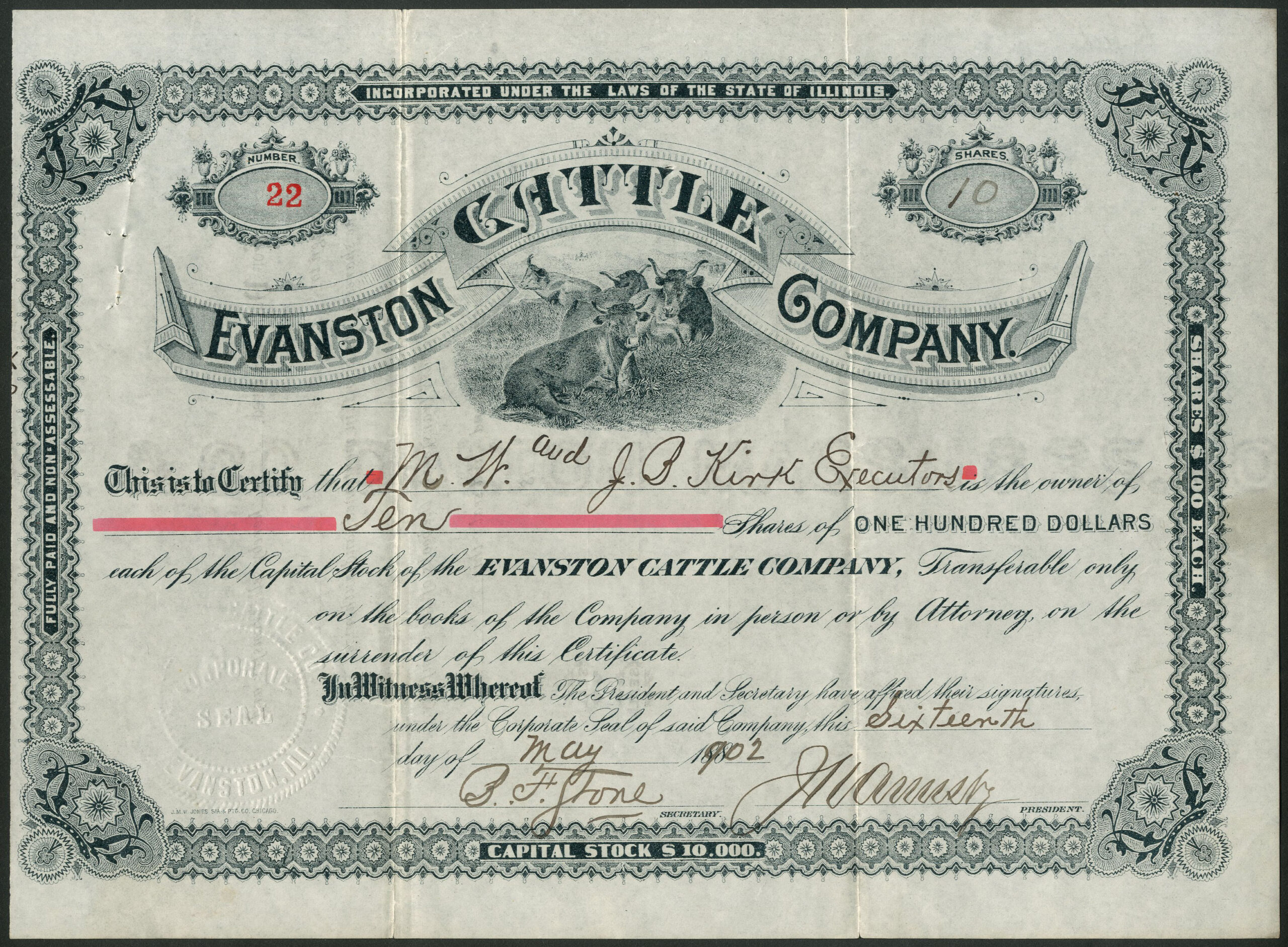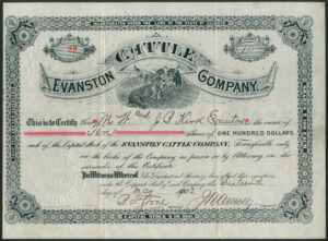 Incorporated in 1885 in Illinois. The company was headquartered at Evanston, Cook County, Illinois. Their memorandum states that they were to raise, graze and deal in cattle but we cannot image that they did this in this Chicago locality. No more information available.
