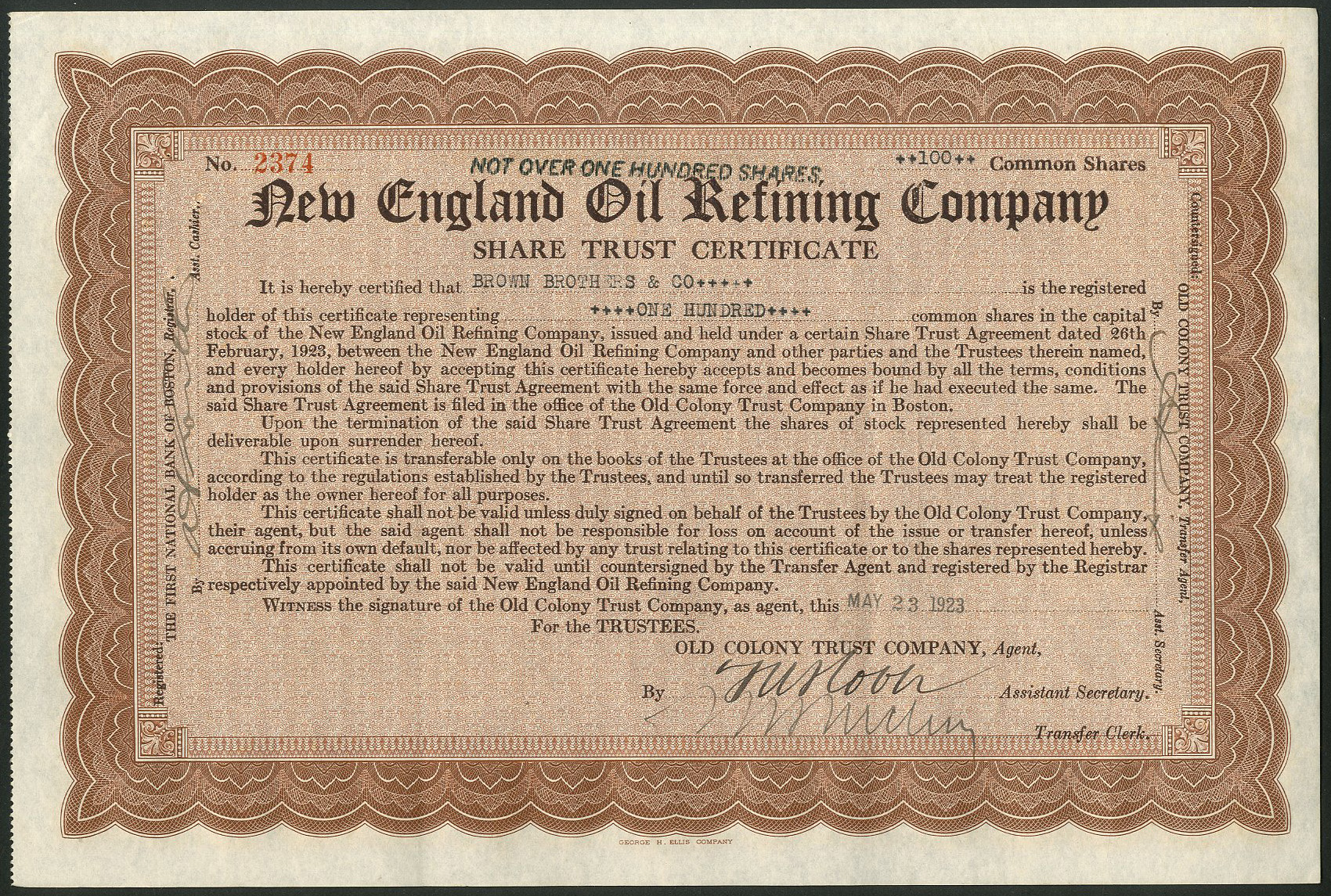 Incorporated in Massachusetts as a subsidiary of the New England Oil Company.