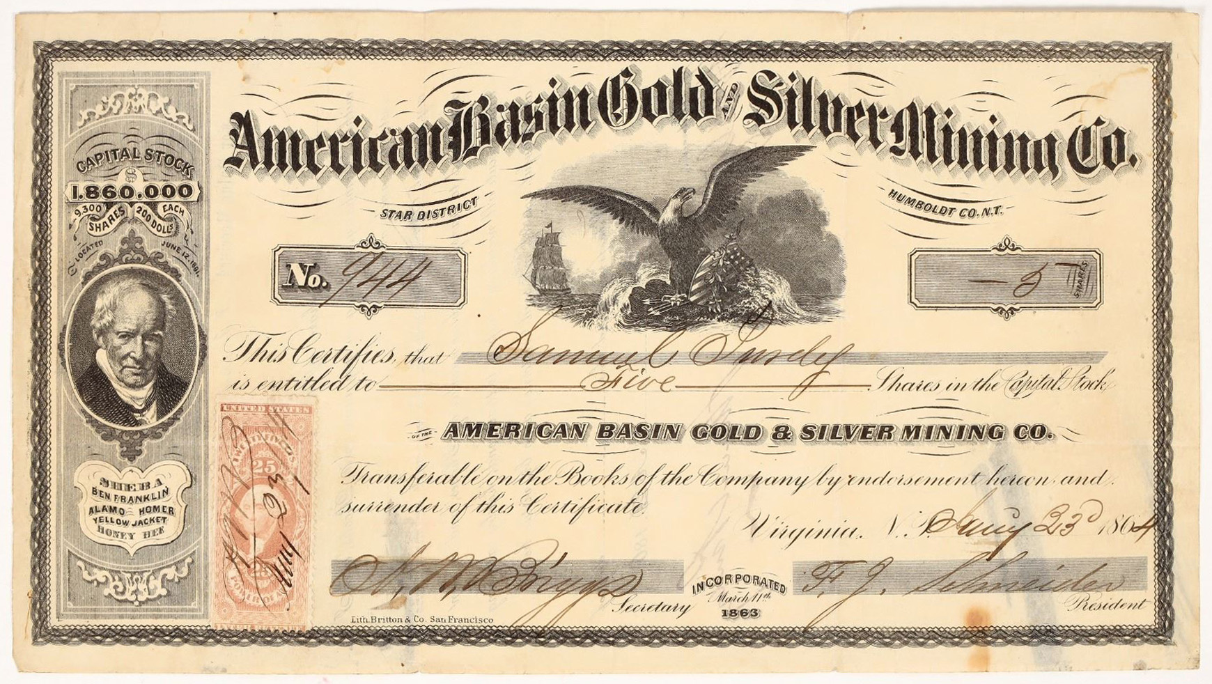 Incorporated in Nevada Territory 11th March 1863. Star District, Humboldt County, Nevada Territory.