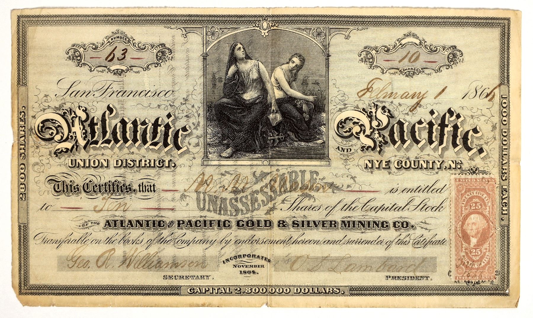 Incorporated in California November 1864. Union District, Nye County, Nevada.