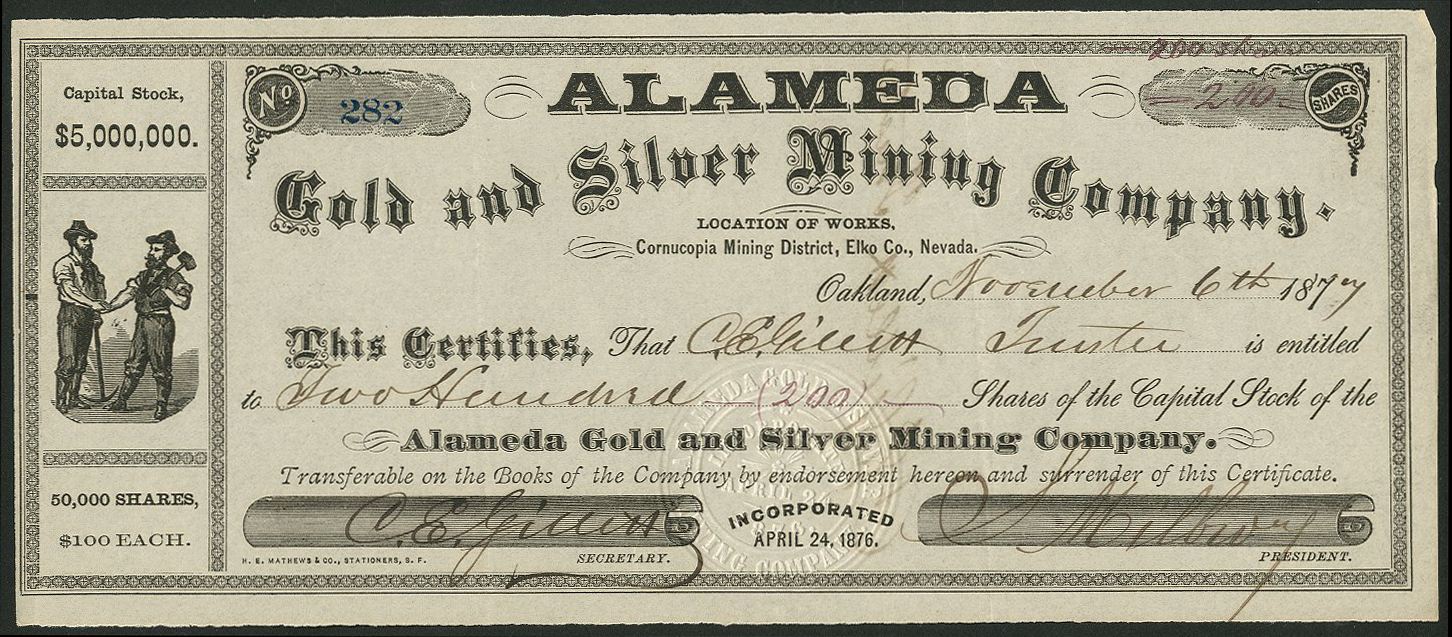 Incorporated in California 24th April 1876 with offices in Oakland. Cornucopia Mining District, Elko County, Nevada.