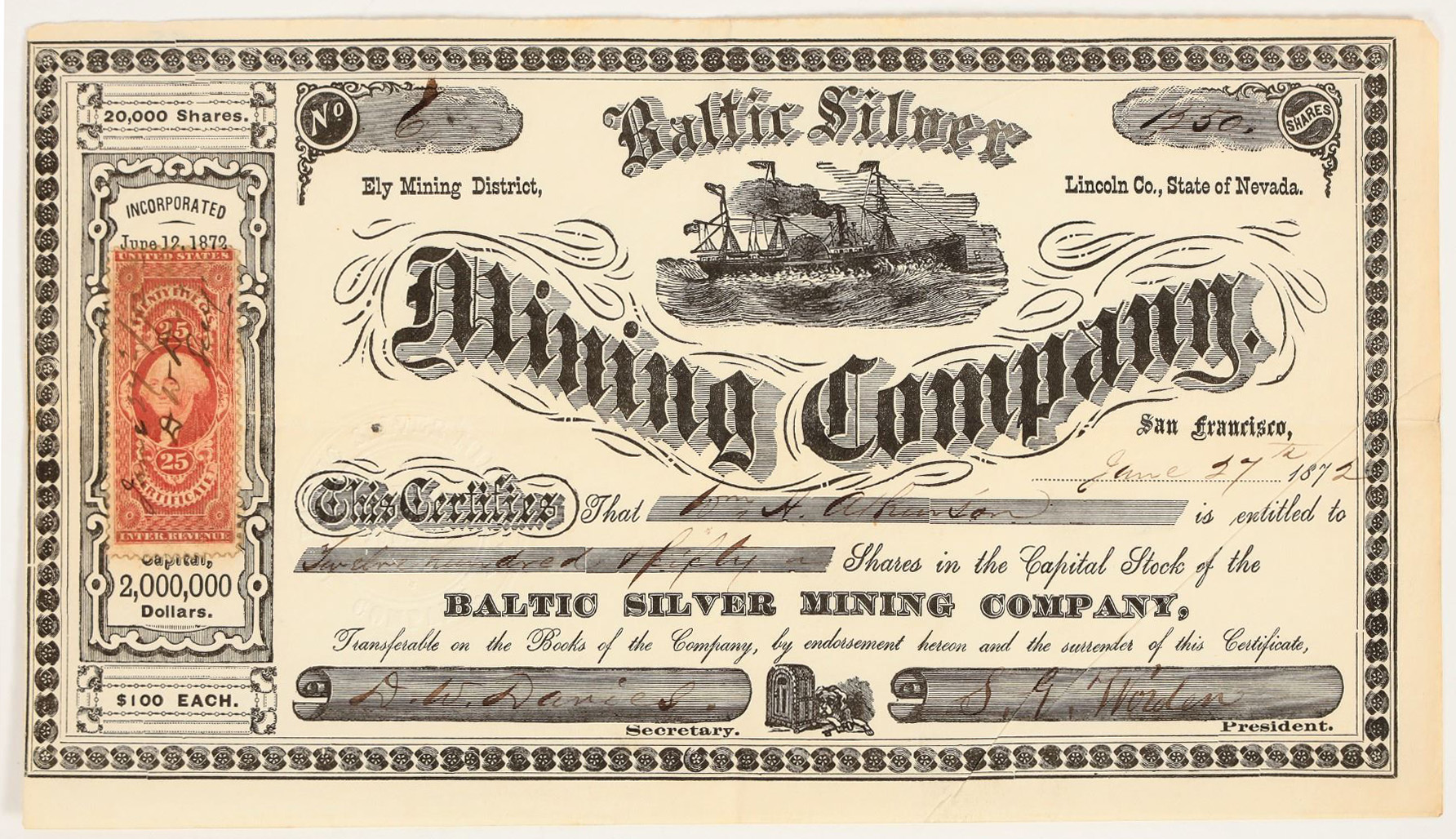 Incorporated in California 12th June 1872. Ely Mining District, Lincoln County, Nevada.