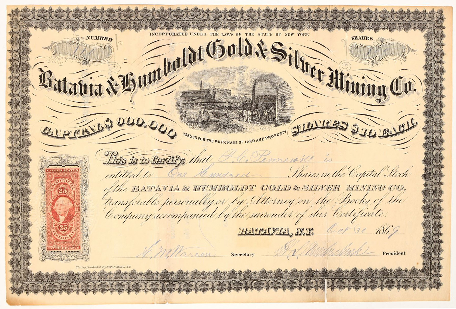 Incorporated in New York by 1869 to acquire property in Humboldt County, Nevada