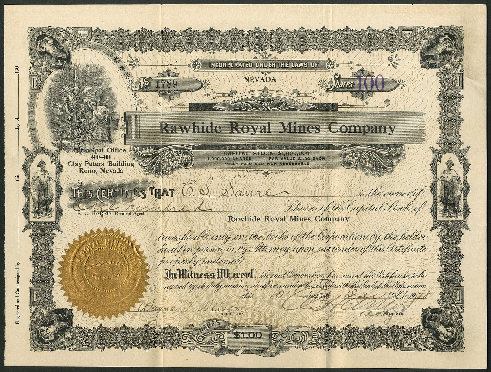 101 | $1 shares | 19[08], black, gold underprint | >1789 | EF | $25-30 |