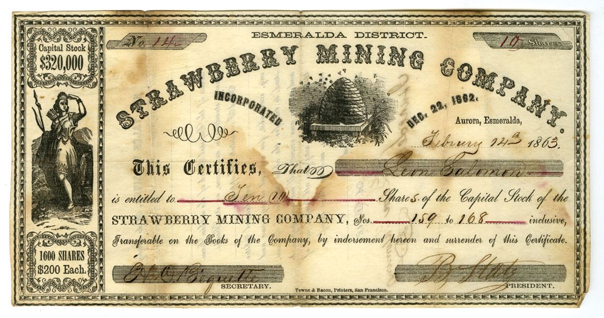 Incorporated 22nd December 1862. Mine at Aurora, in the Esmeralda District, Nevada. Capital $320,000 in shares of $200.