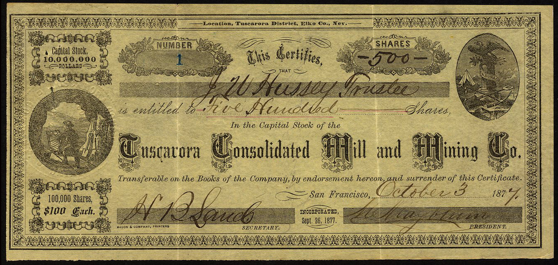 Incorporated in California or Nevada 26th September 1877. Tuscarora Mining District, Elko County, Nevada.