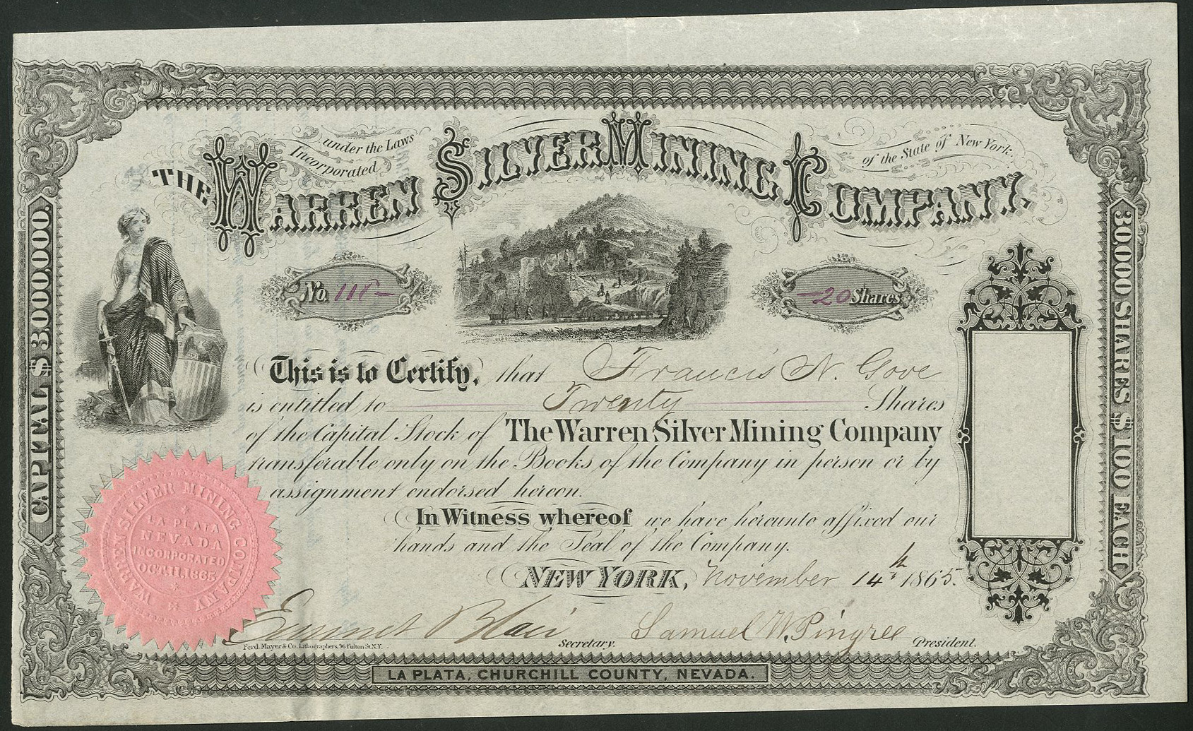 Incorporated in New York 11th October 1865. Mines at La Plata, Churchill County, Nevada.