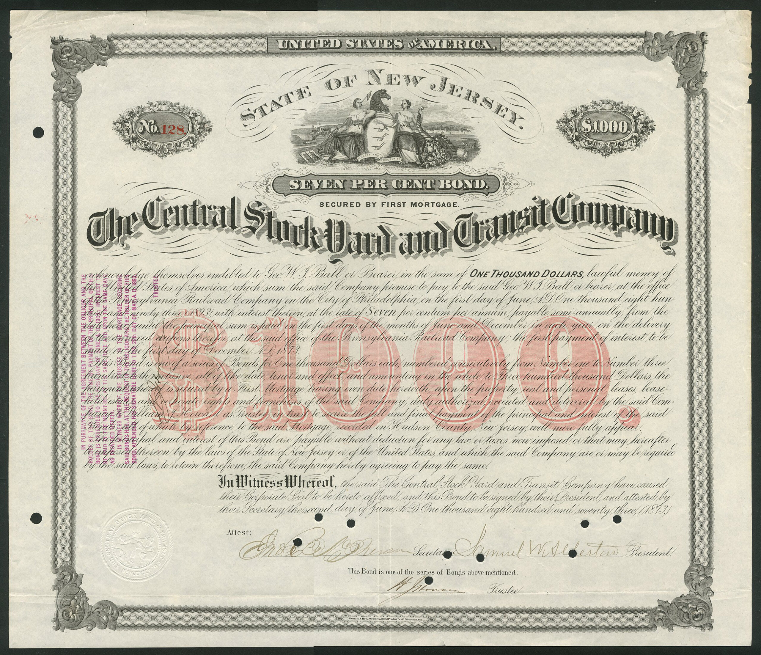 106x | $1000 | 1873, black and red, cancelled | 300 | VF | $75 |