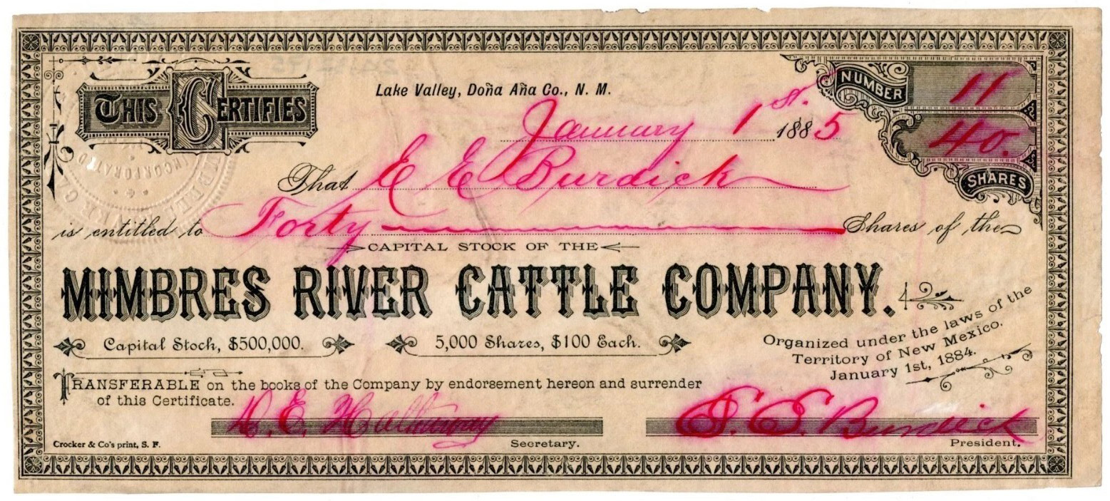 Incorporated in New Mexico 1st January 1884. Property in Lake Valley, Doña Aña County.