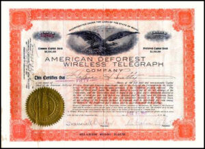 Formed by Abraham White to promote the inventions of Lee DeForest, the last in a series of companies formed mainly for stock promotion. In 1906 the company was acquired by United Wireless, another of White’s companies, shareholders being offered complicated share exchange deals.