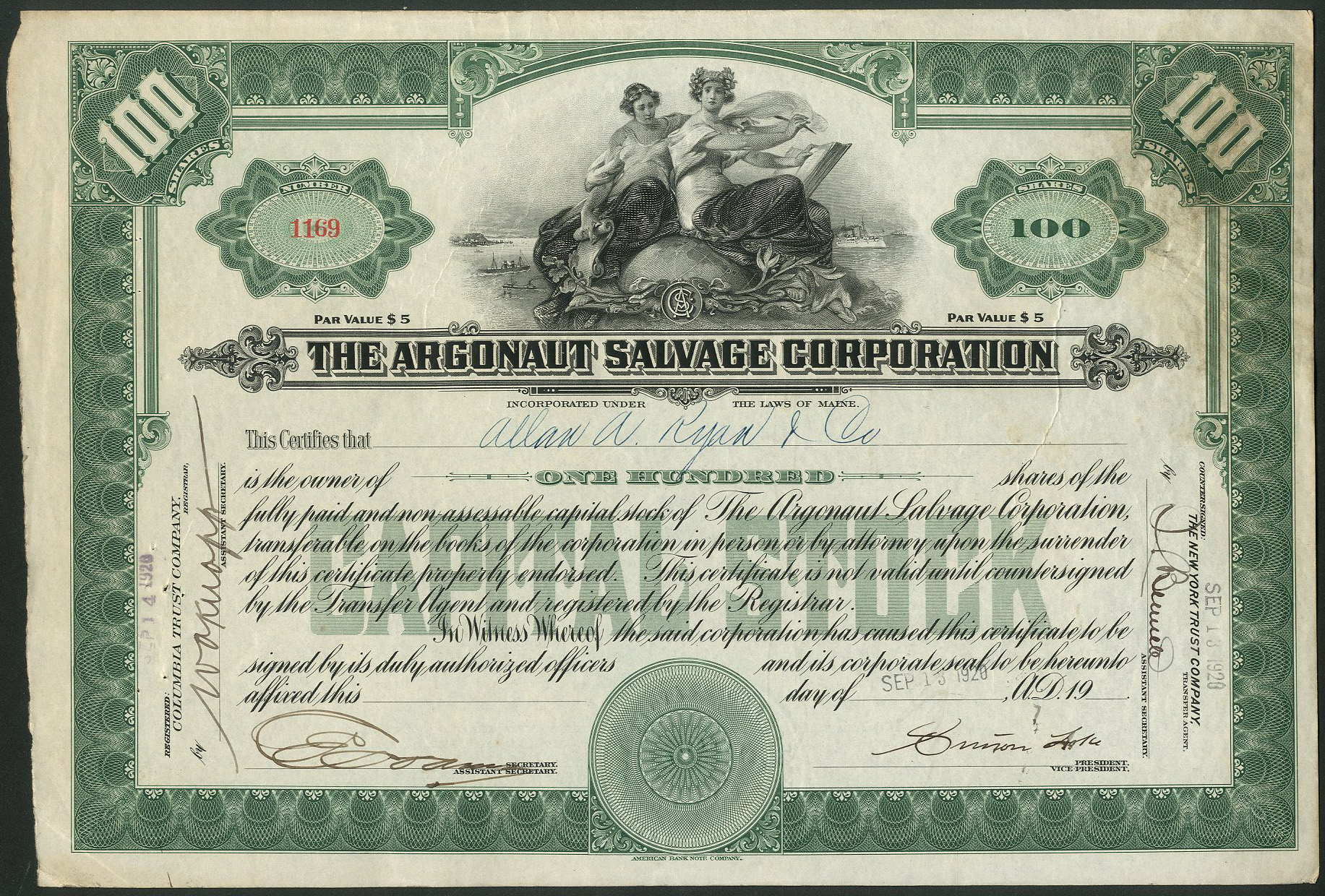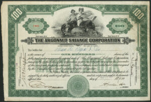 Incorporated in Maine in 1919 as sole licensee of Simon Lakes salvage apparatus as a reorganisation of the Argonaut Salvage Corporation of Bridport, Connecticut (formed in 1916). Formed to raise wrecks and cargo in Long Island Sound and especially those sunk during WWI especially coal cargoes sunk in the English Channel.