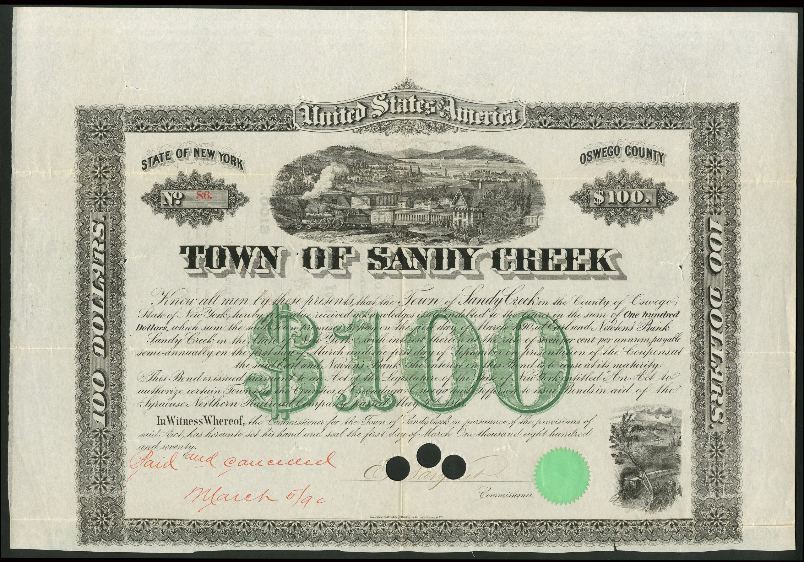 Town of Sandy Creek, 7% Loan, 1870 in aid of the Syracuse Northern Railroad