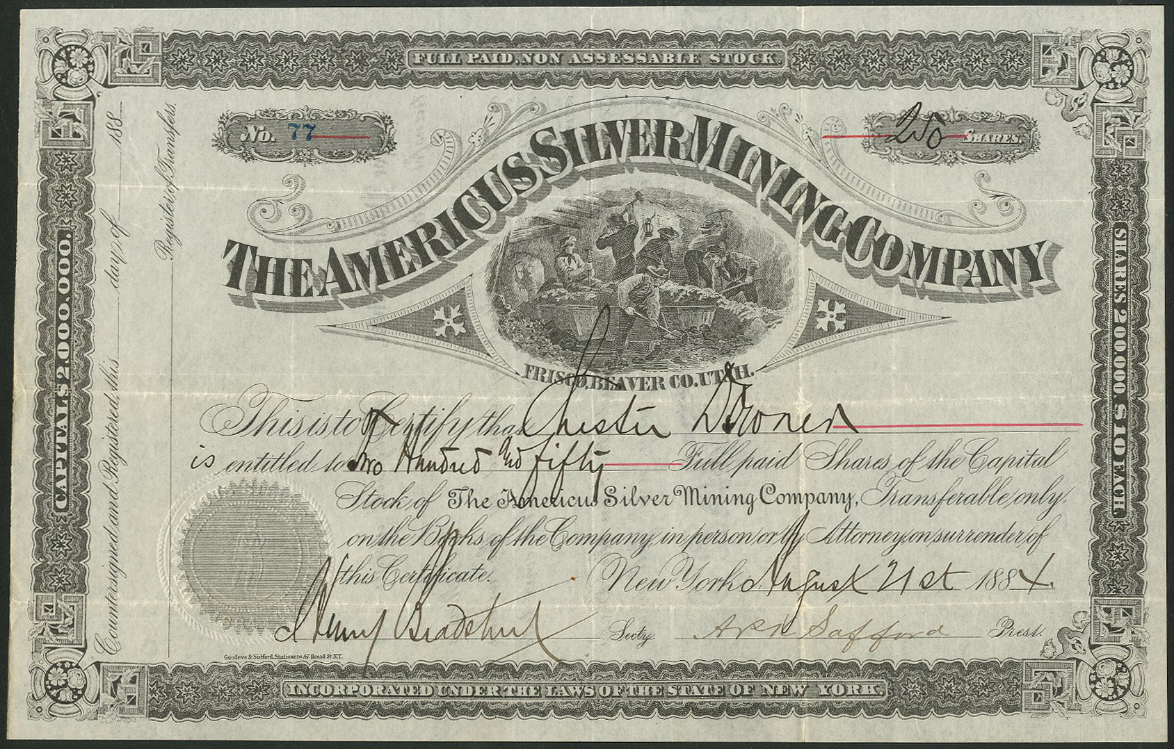 Incorporated in New York in 1884. Mines at Frisco, Beaver County, Utah.