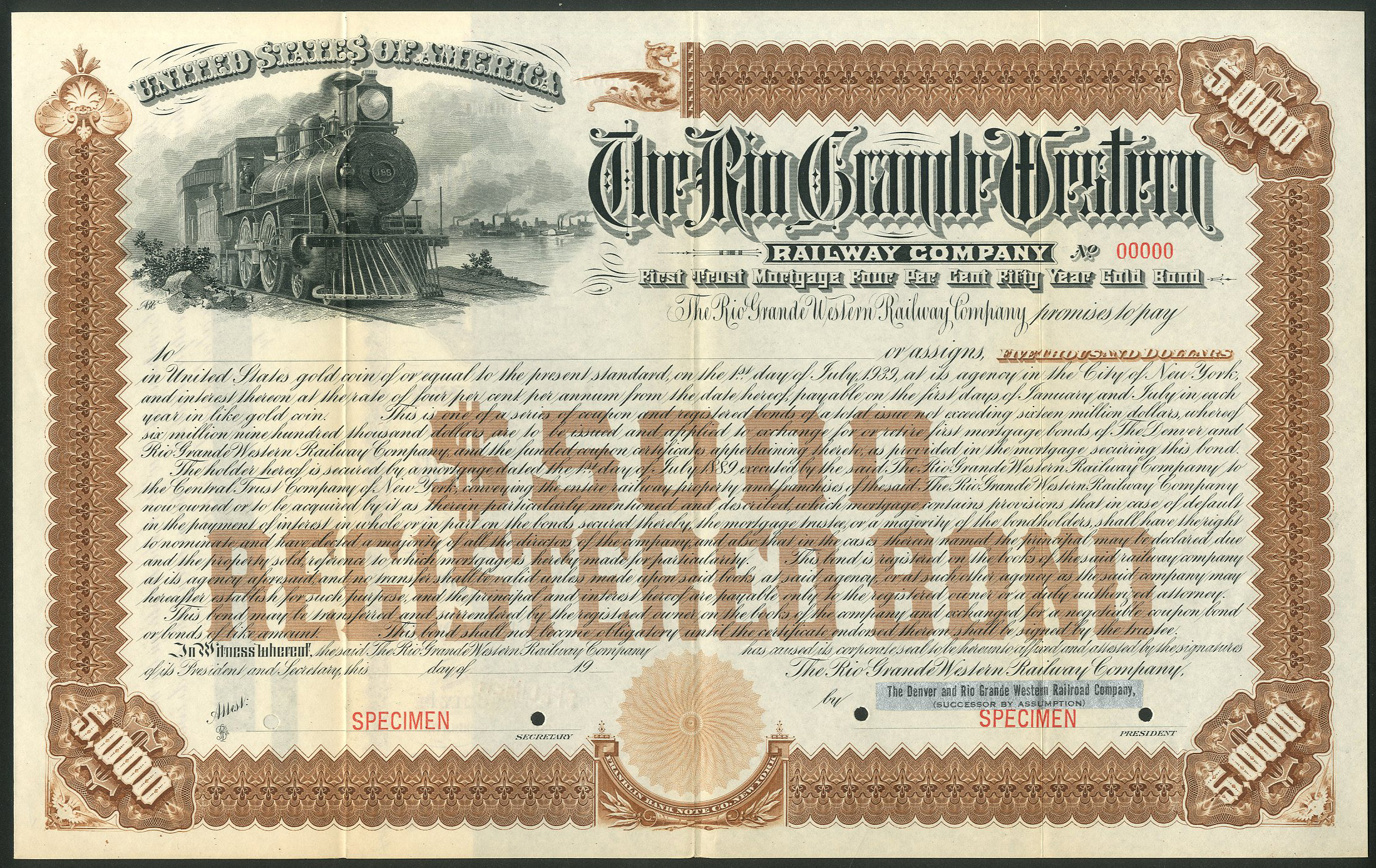 Incorporated in 1889 in Utah as part of the re-gauging of the Denver & Rio Grande Western Railway in the State. In 1908, it was consolidated with the Denver & Rio Grande Railroad Company into the Denver & Rio Grande Railroad Company (Consolidated).